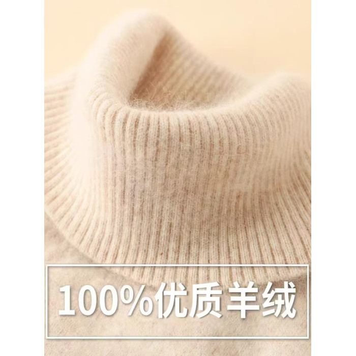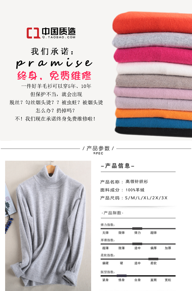 鄂爾多斯市高領毛衣女套頭修身100羊絨針織衫加厚羊毛打底衫寬松