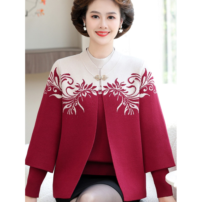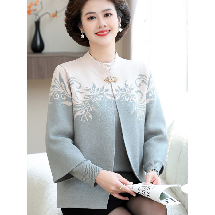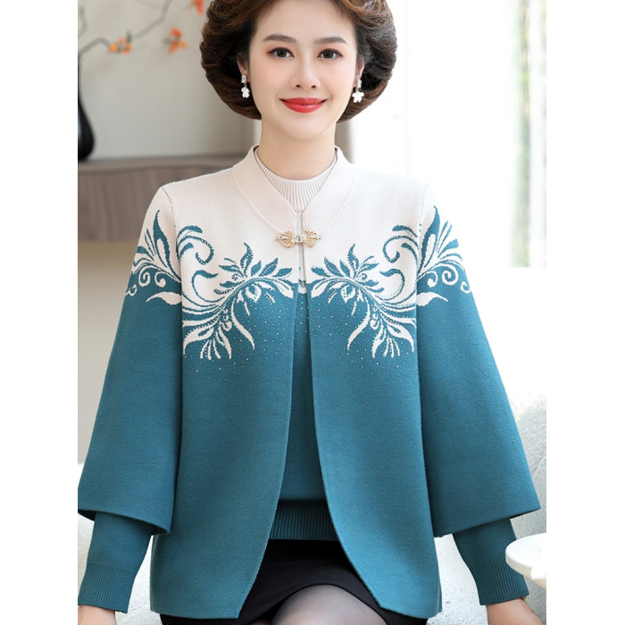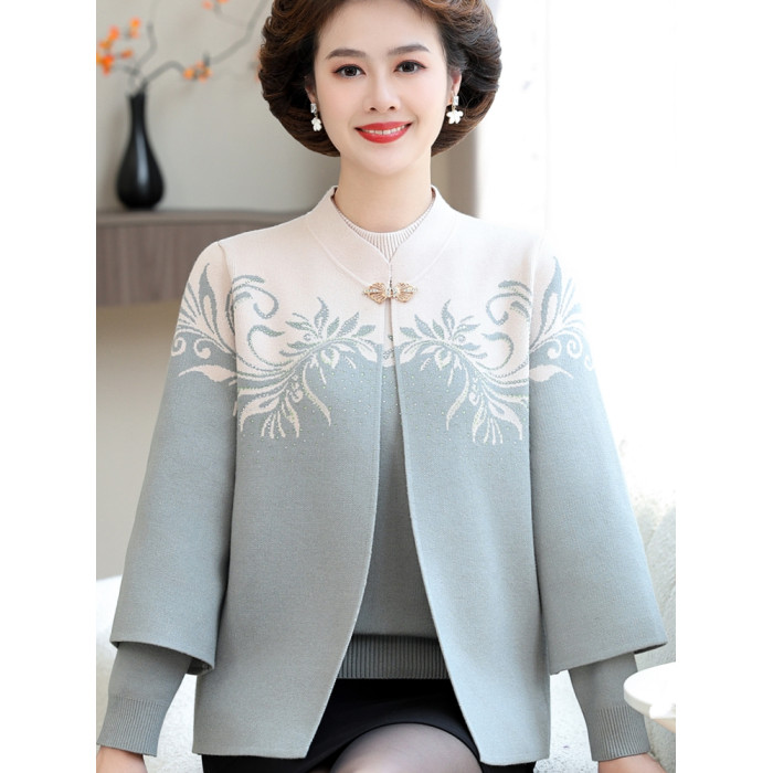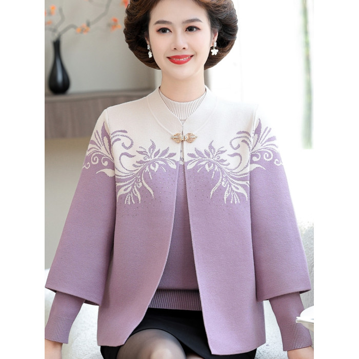 洋氣媽媽裝毛衣外套春秋時尚針織開衫中老年人女秋冬打底衫兩件套