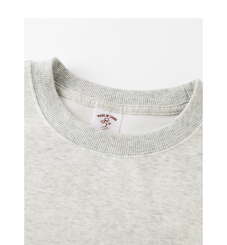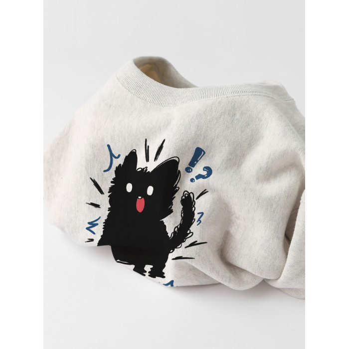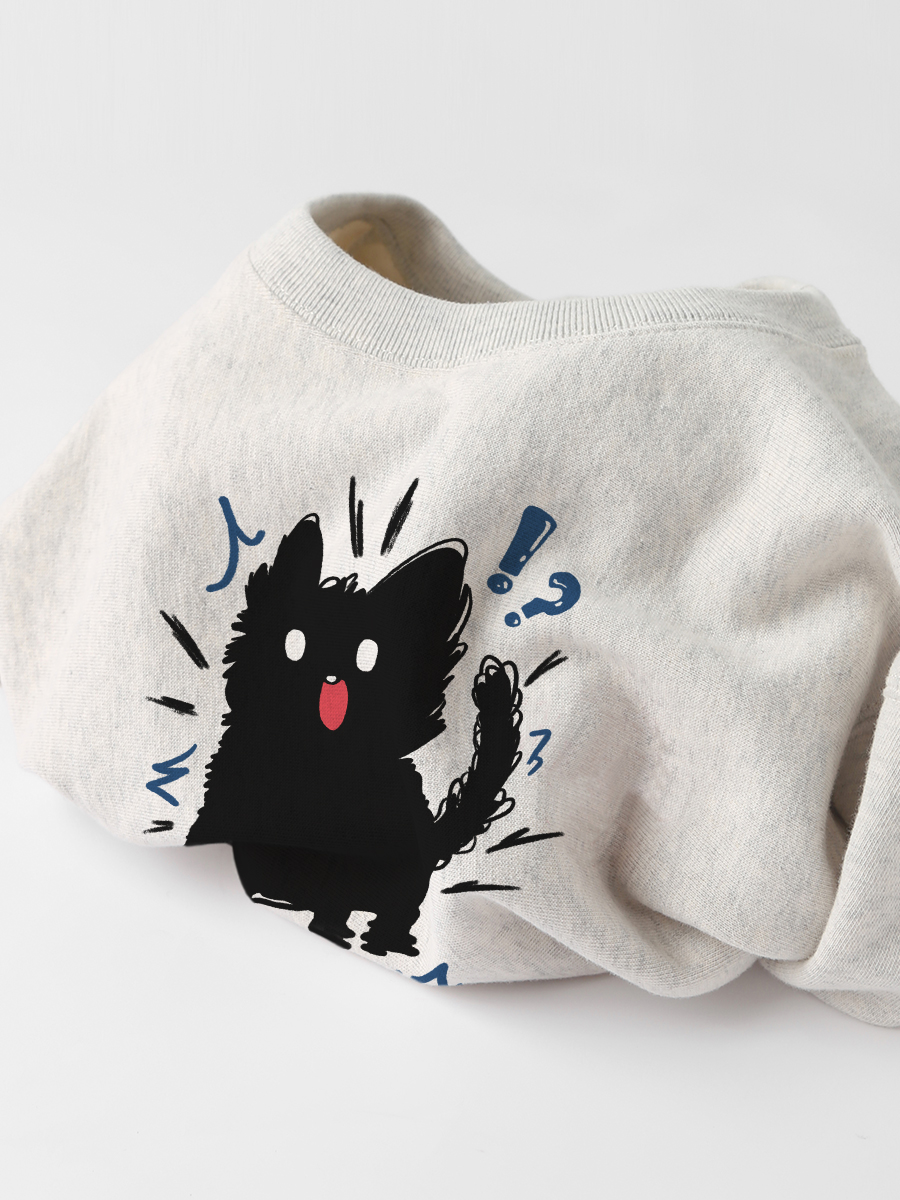 炸毛の黑貓!雪花灰圓領衛衣原創印花設計感長袖打底衫女2025新款
