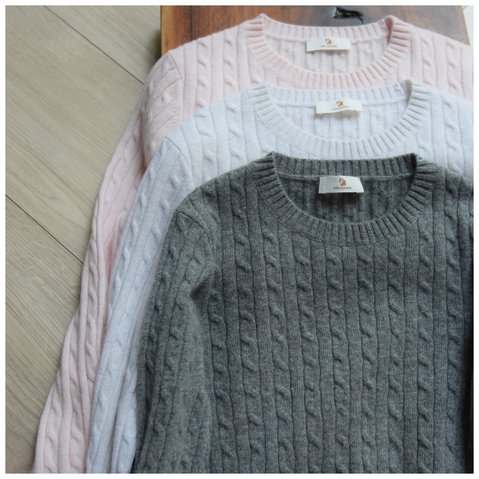 原單康賽妮 扭花套頭baby雲朵感春款圓領套頭長袖純山羊絨打底衫