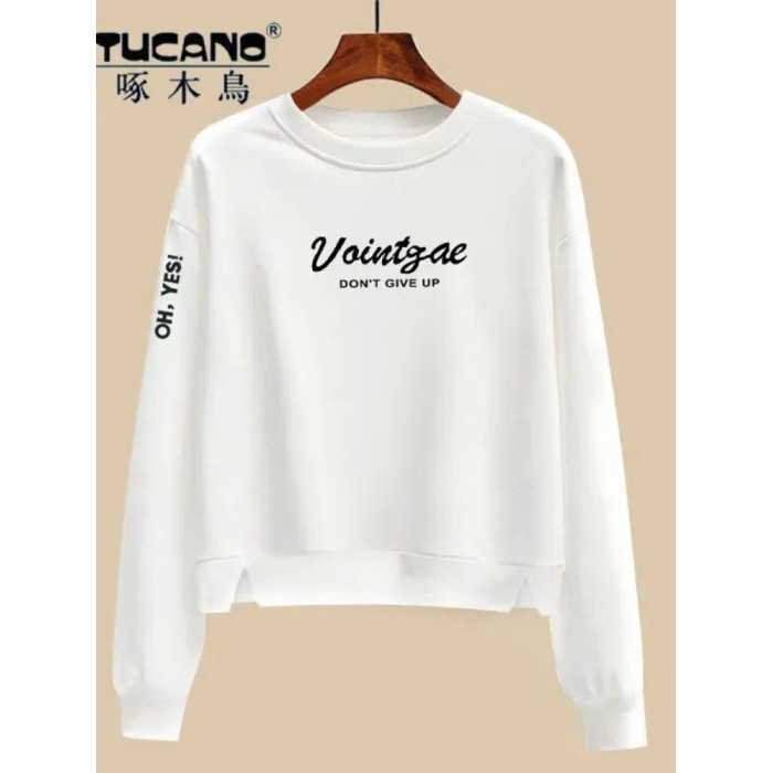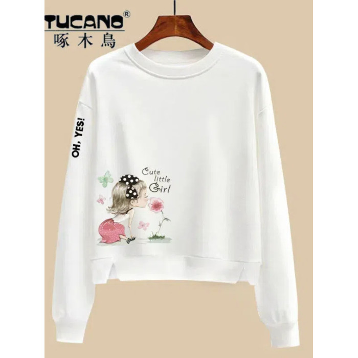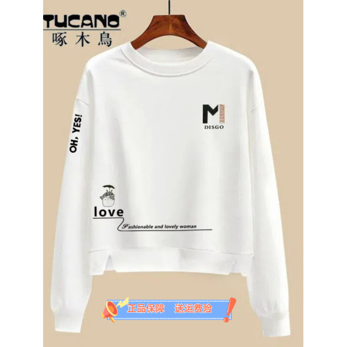 啄木鳥純棉白色薄款長袖衛衣女2025春秋高腰寬松顯瘦上衣打底衫女