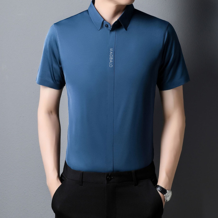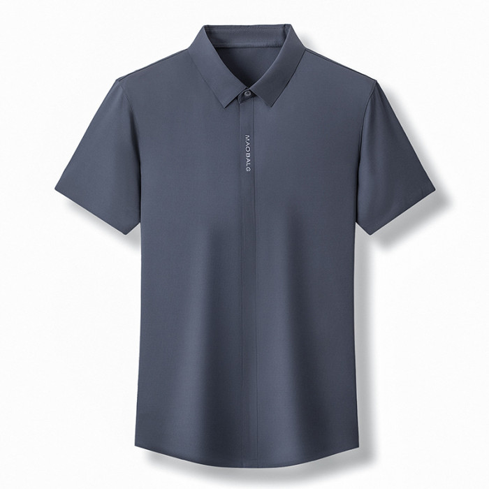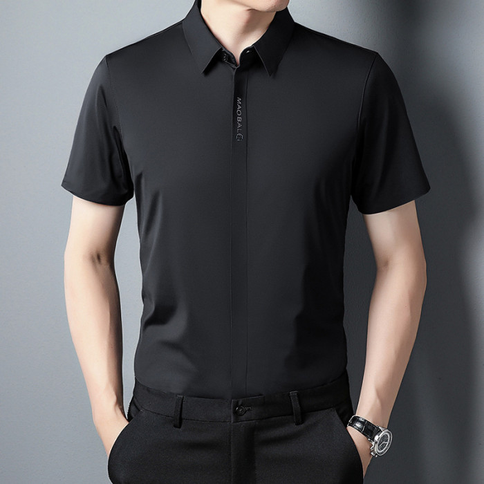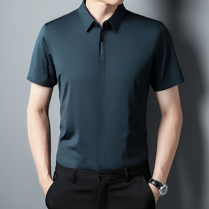 夏季新款無痕短袖T恤襯衫男士中年商務休閒POLO衫寬松爸爸裝襯衣