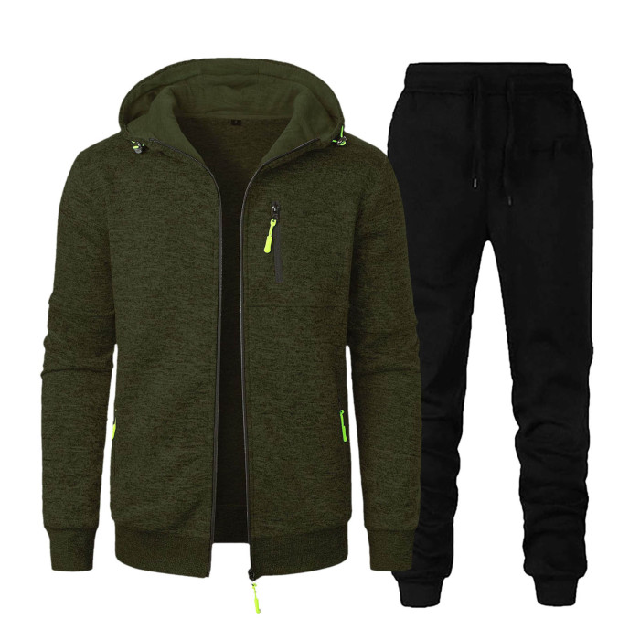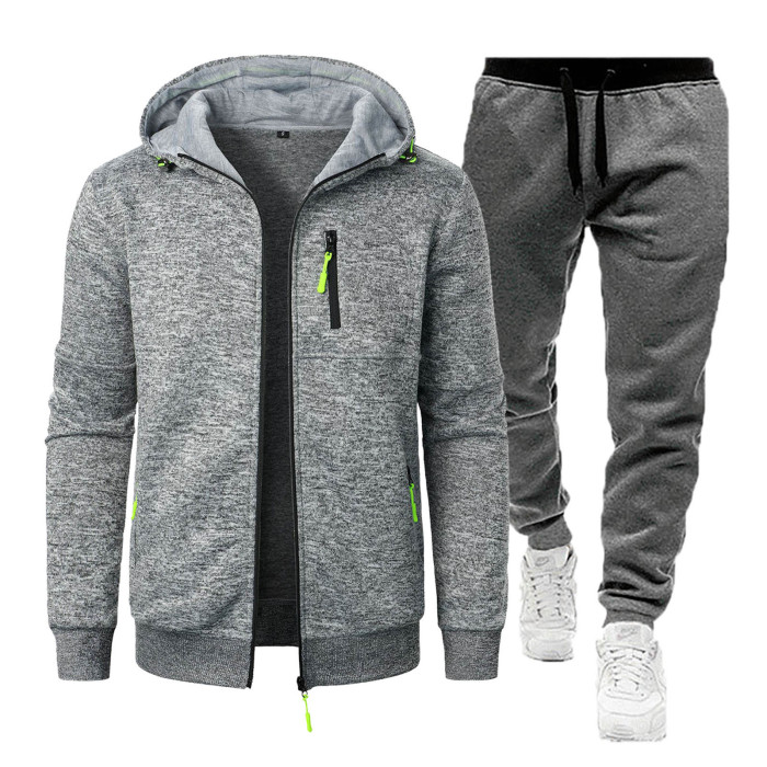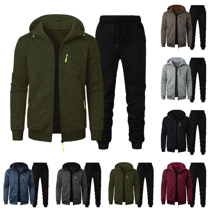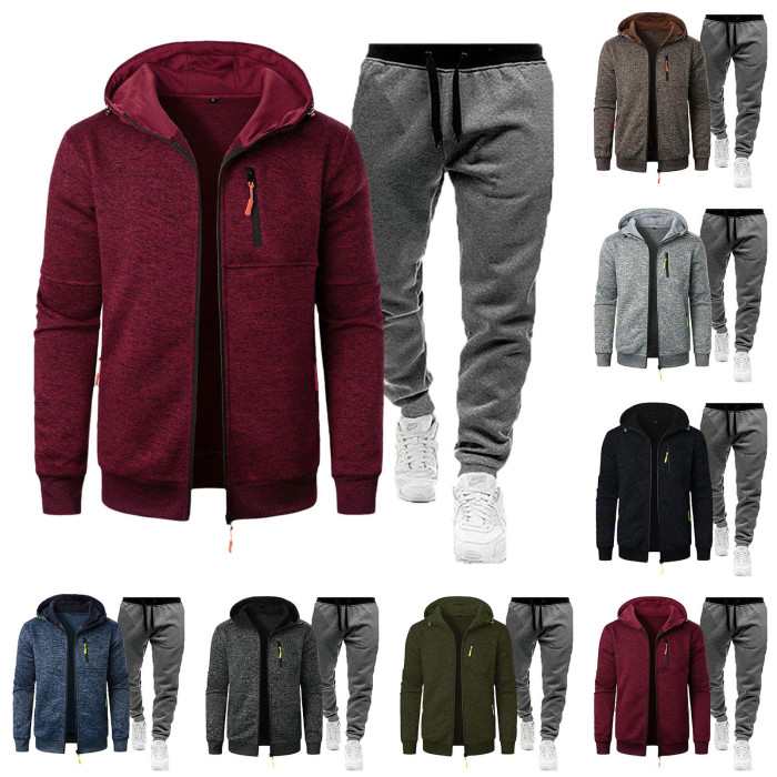 新款男士運動健身休閒提花衛衣連帽外套針織開衫套裝款