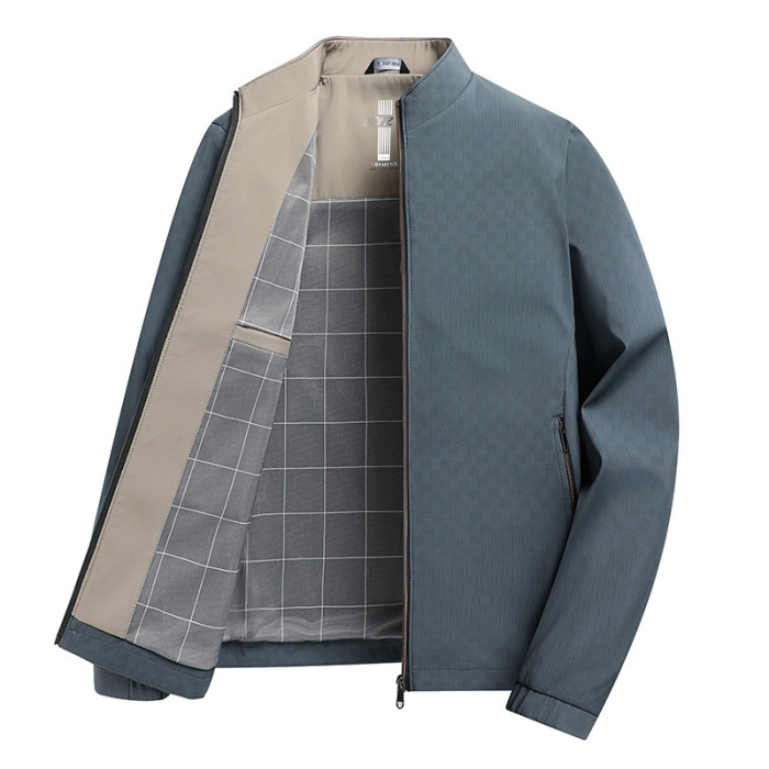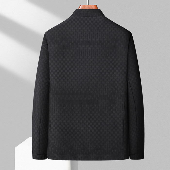 高品質春季男裝商務立領夾克純色茄克衫2024新款高級青年男士外套