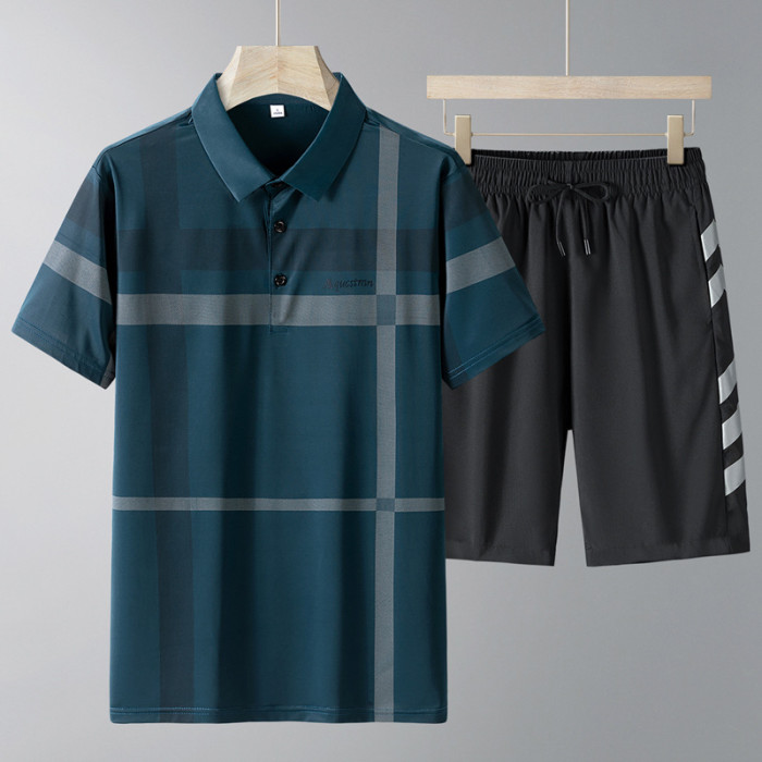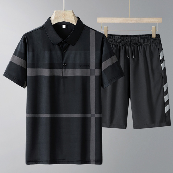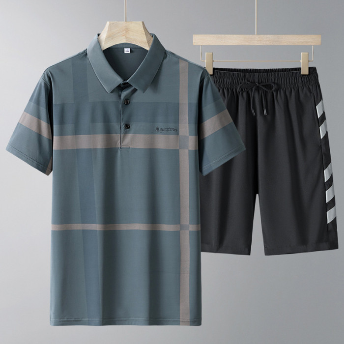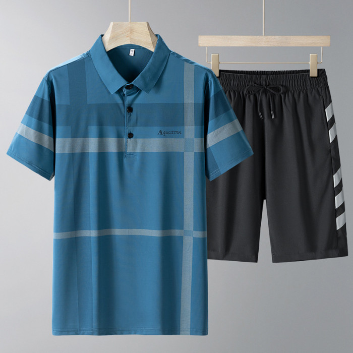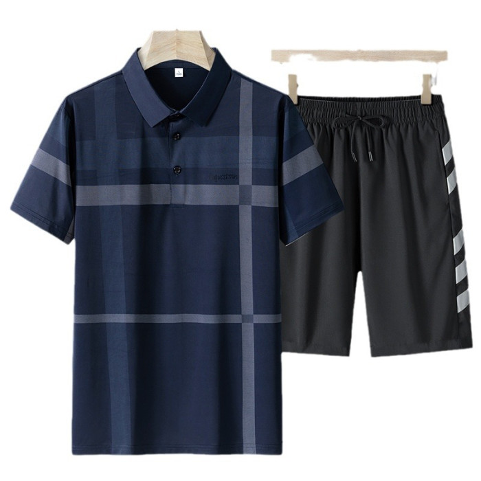 夏季新款中年男士休閒冰絲短袖POLO衫運動短褲爸爸套裝速乾兩件套