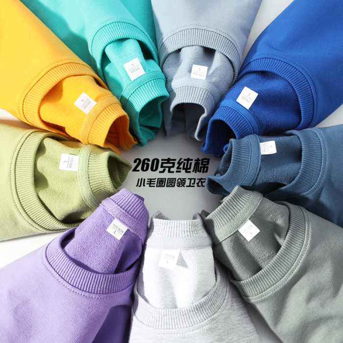 莫蘭迪色系純棉毛圈布圓領衛衣寬松休閒百搭打底衫男女款春秋新款