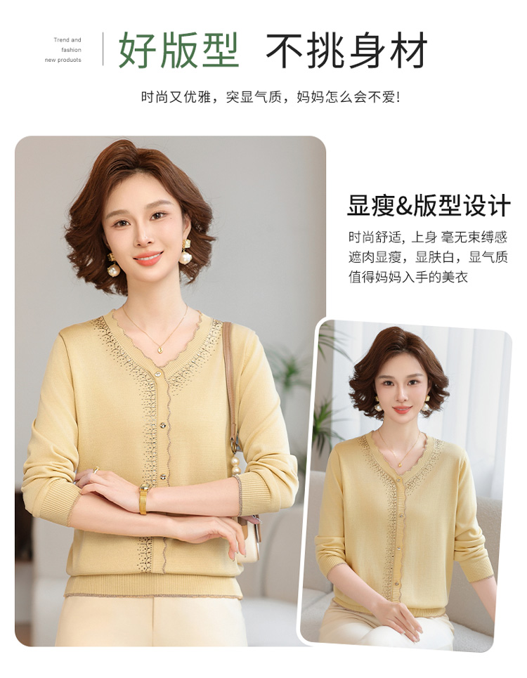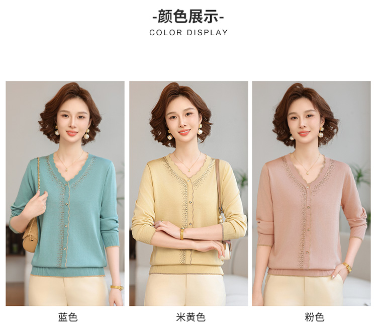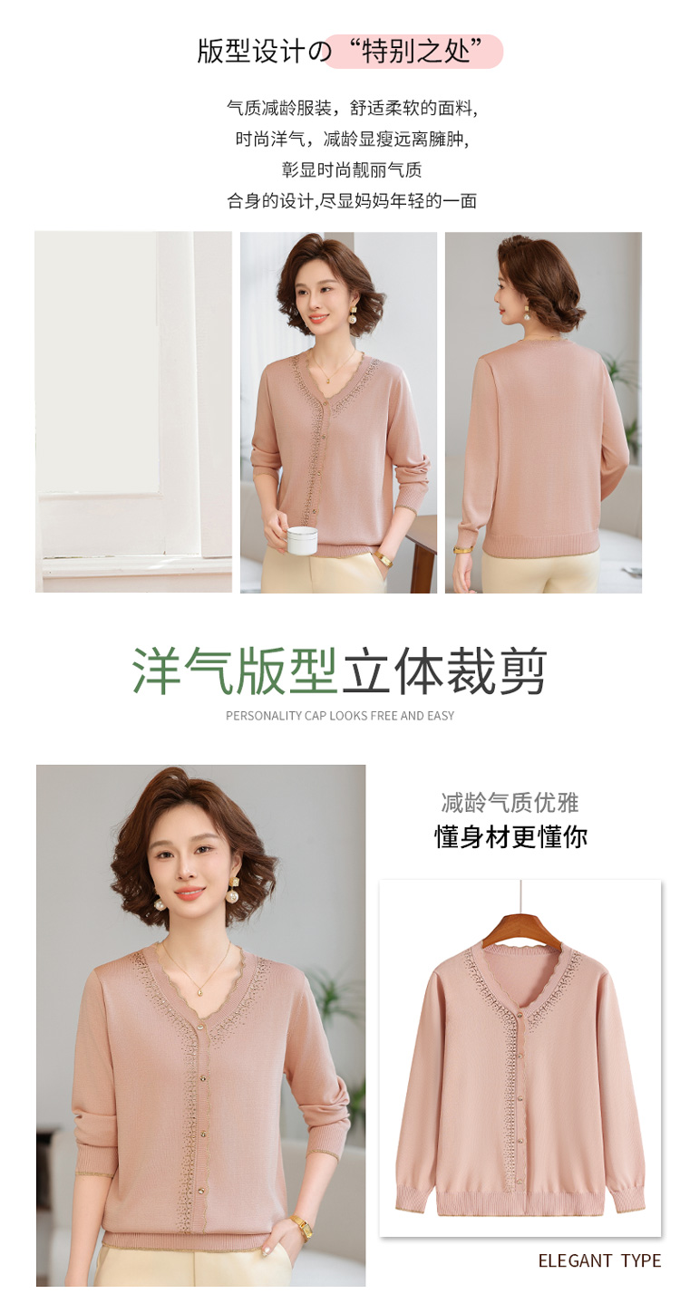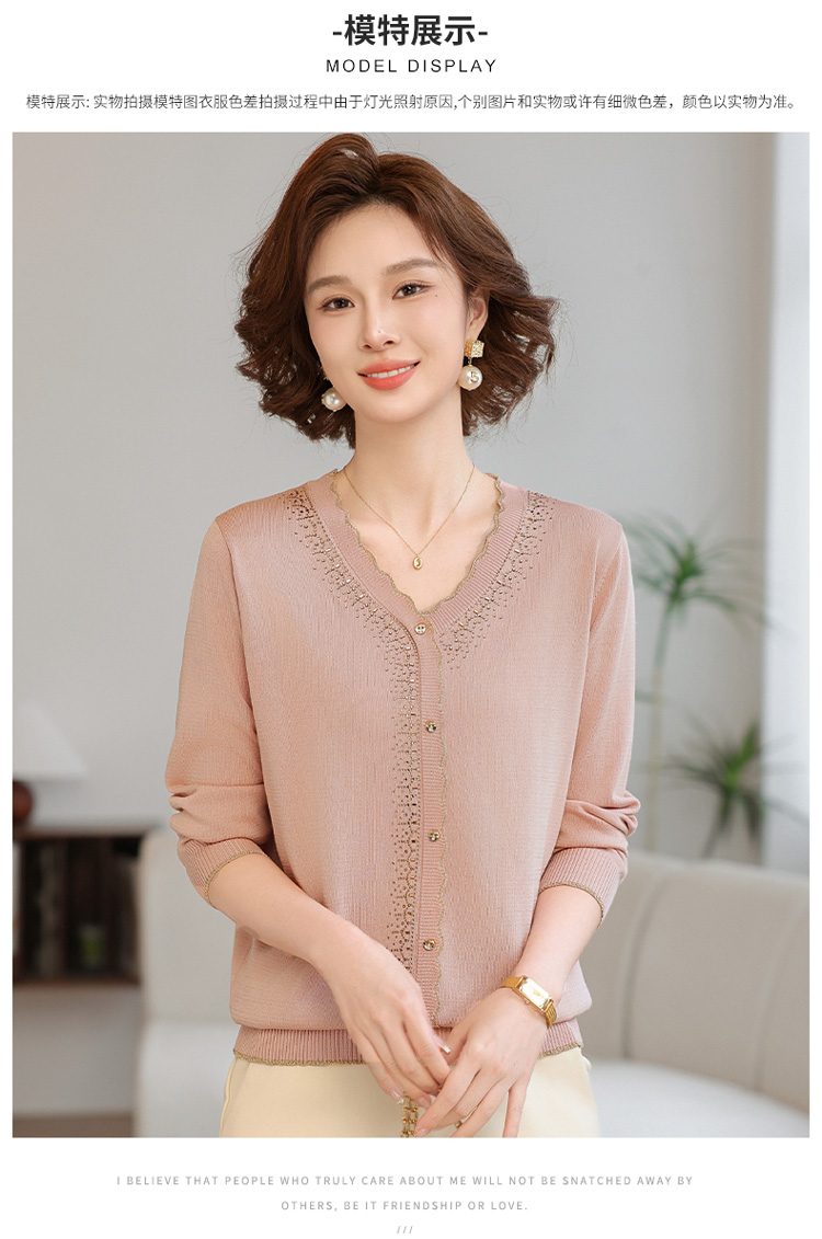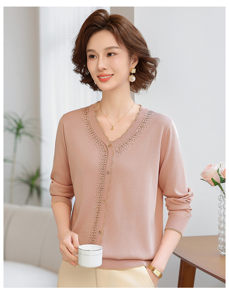 2025新款中老年女裝春季洋氣長袖針織衫媽媽裝春夏薄款冰絲打底衫