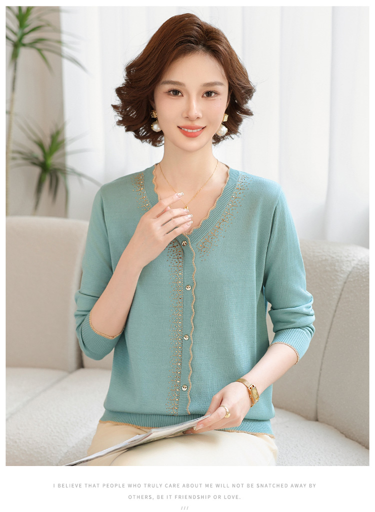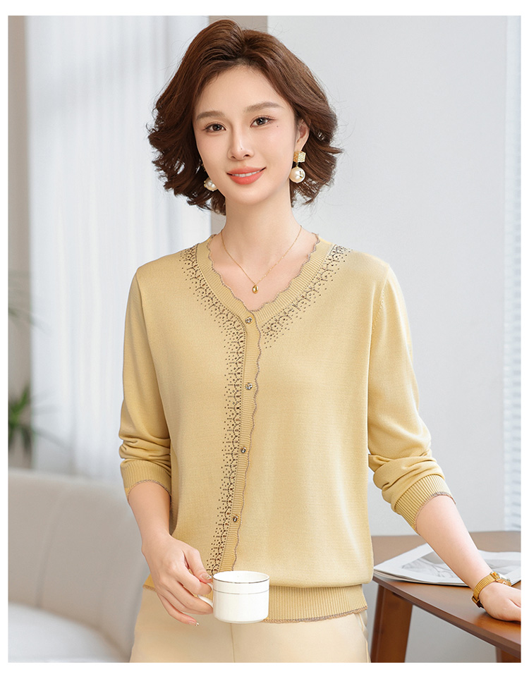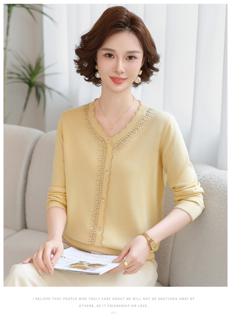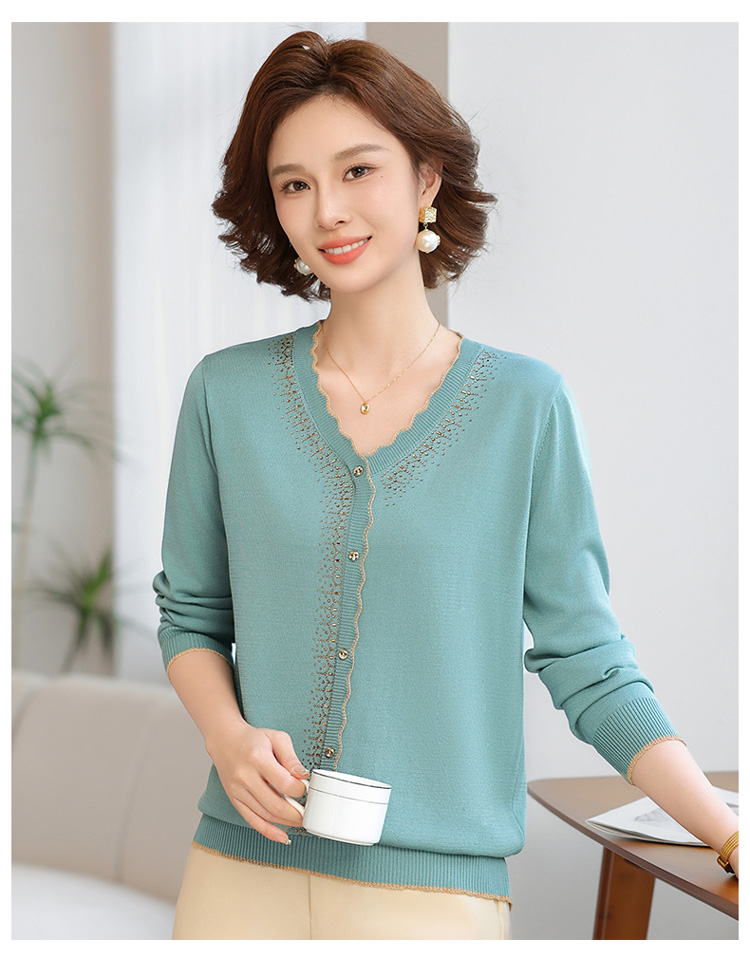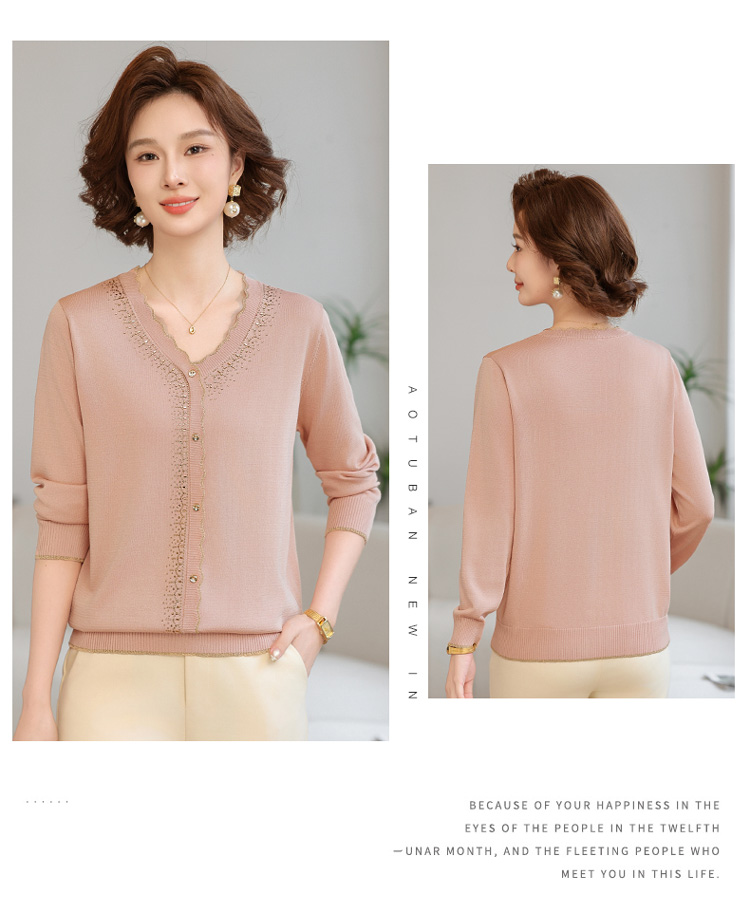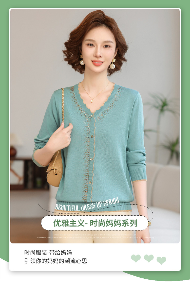 2025新款中老年女裝春季洋氣長袖針織衫媽媽裝春夏薄款冰絲打底衫