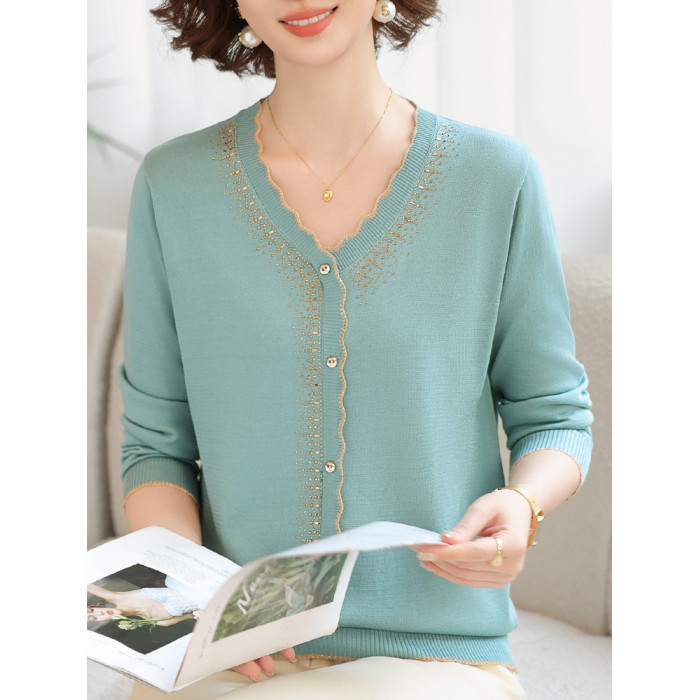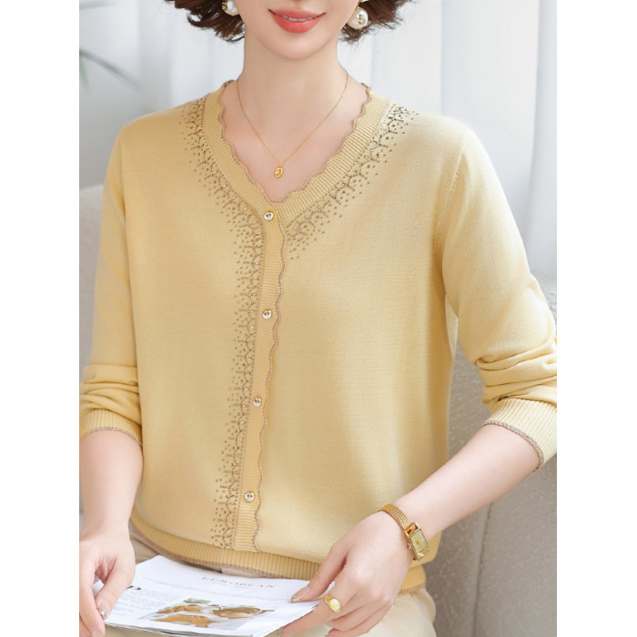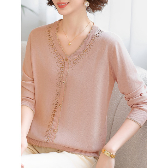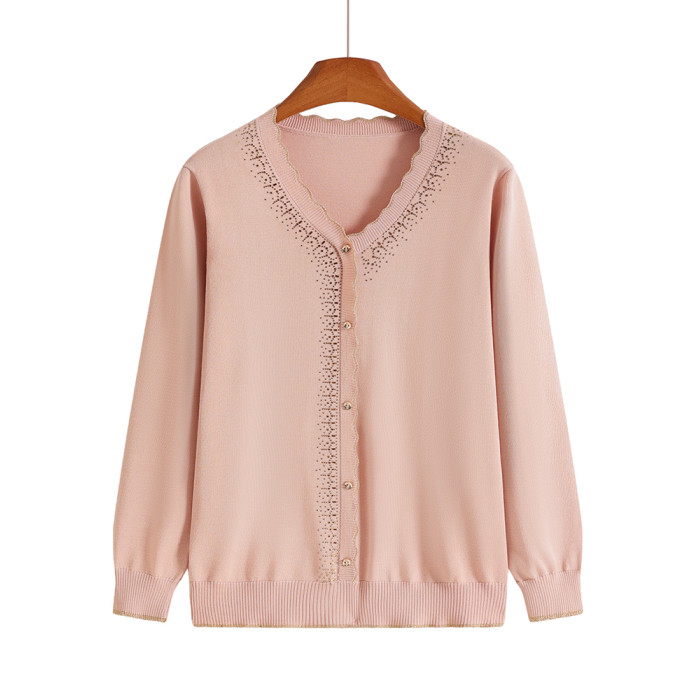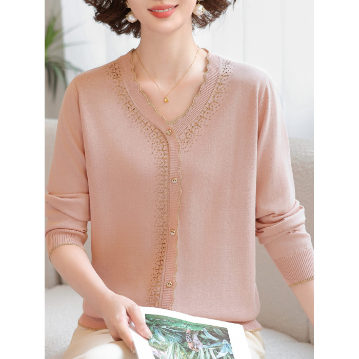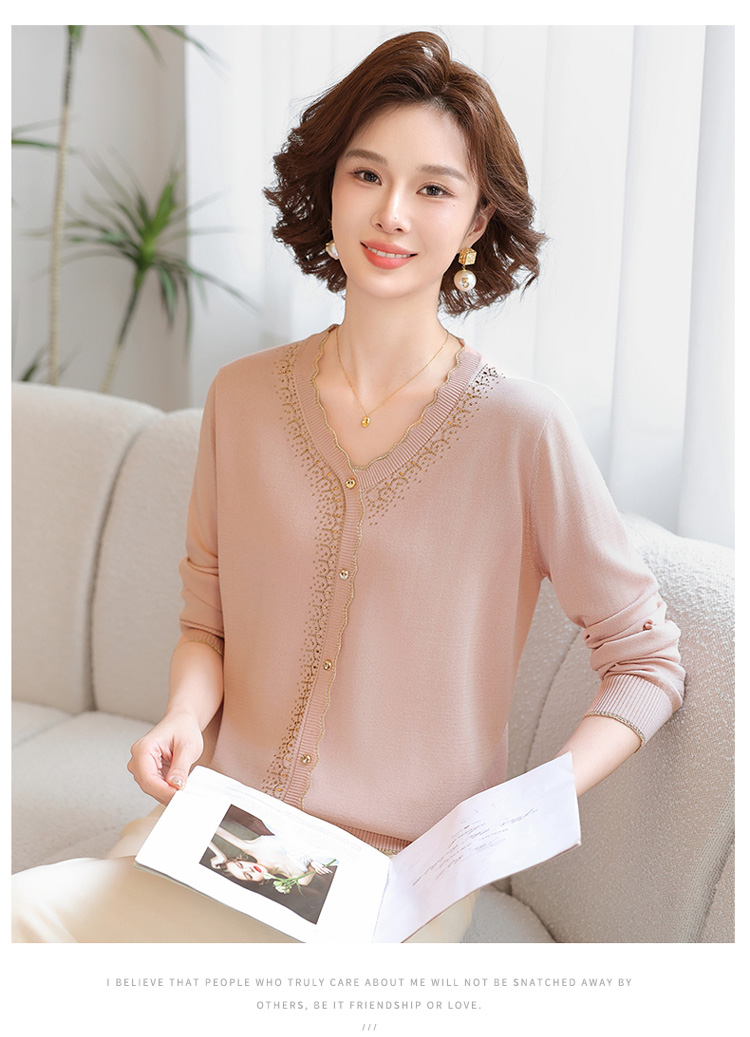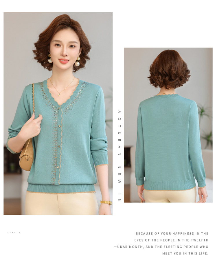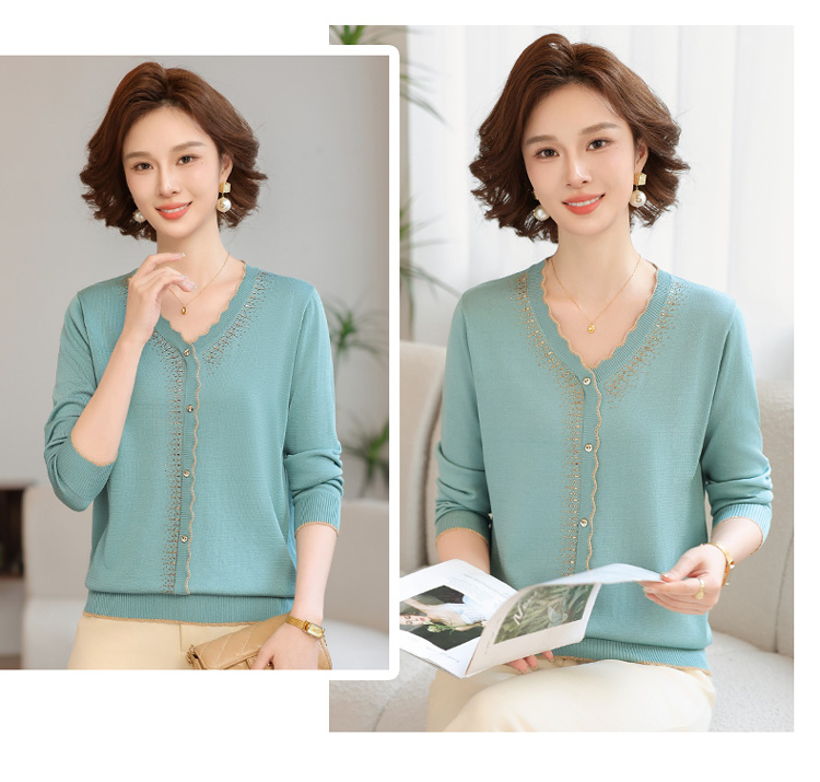 2025新款中老年女裝春季洋氣長袖針織衫媽媽裝春夏薄款冰絲打底衫