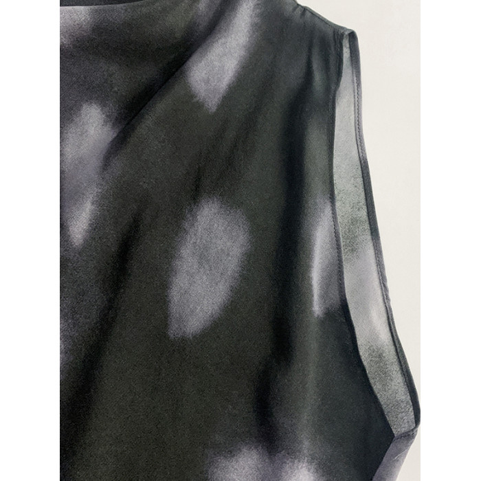 西班牙小衆款輕薄真絲無袖鵝卵石系帶上衣修身顯瘦百搭打底衫背心