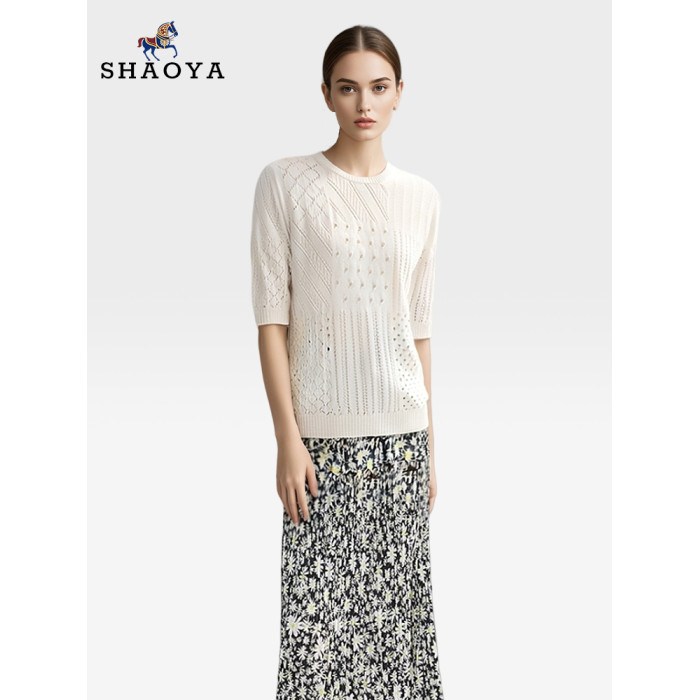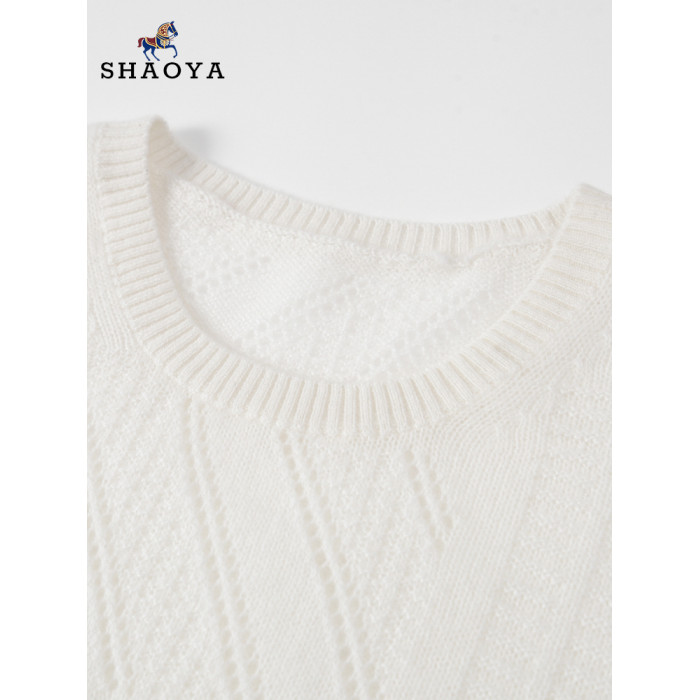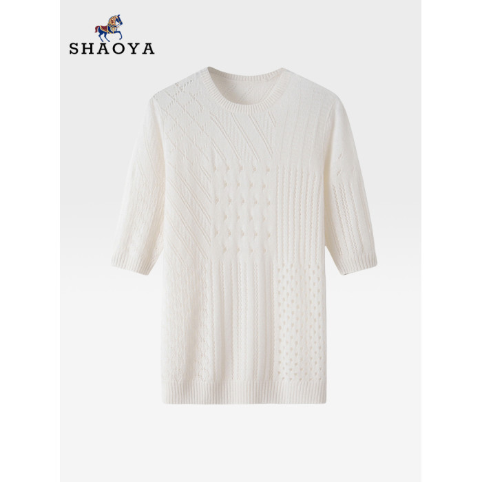 【意大利羊絨衫】100%山羊絨打底衫女圓領半袖針織衫上衣秋冬毛衣