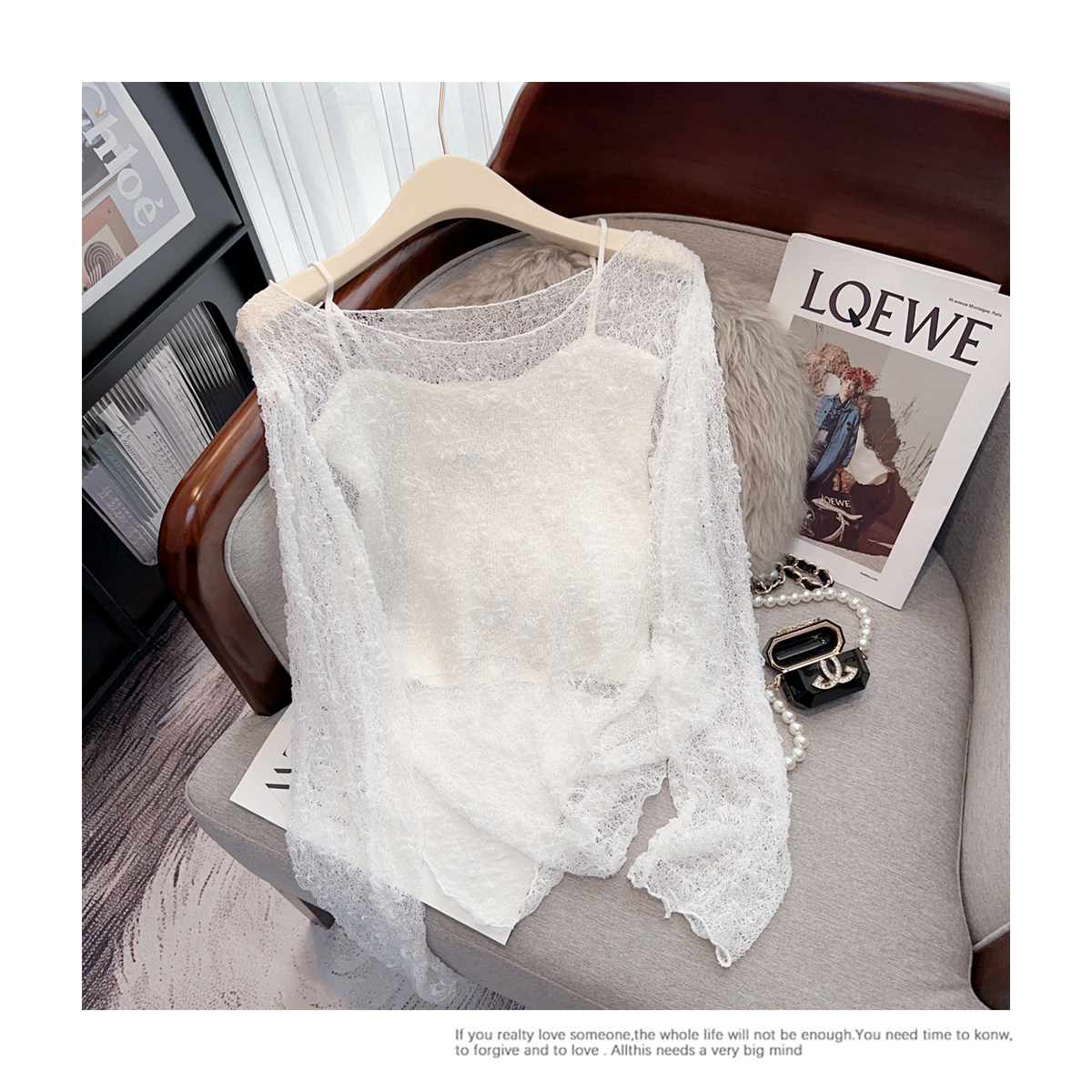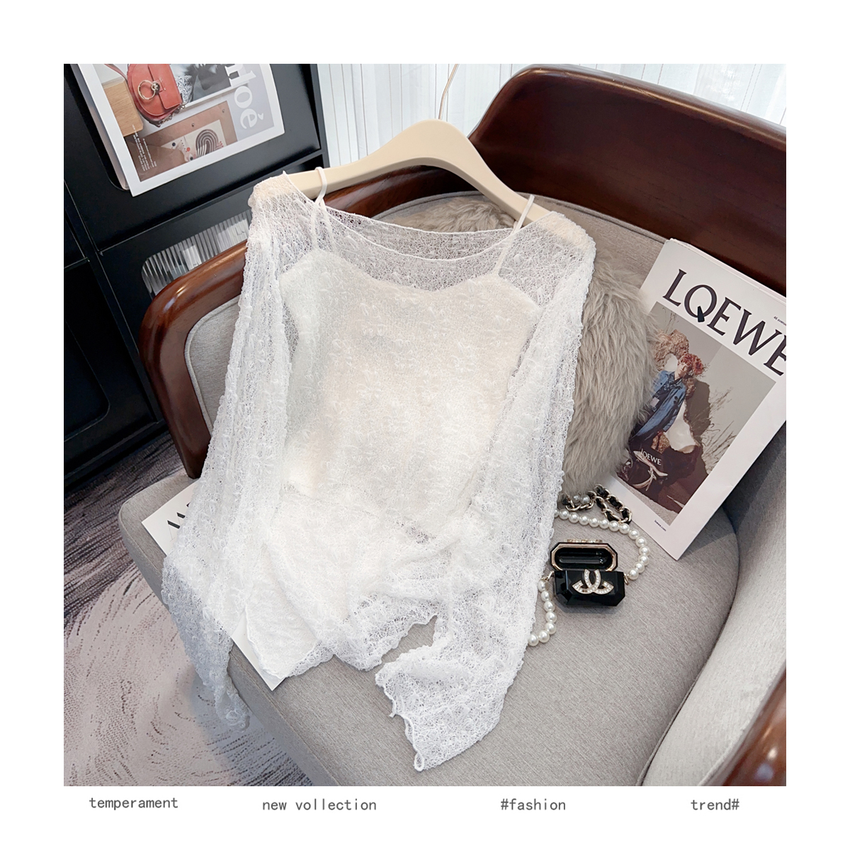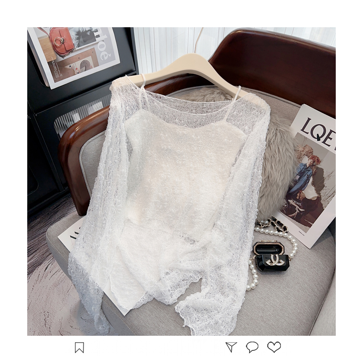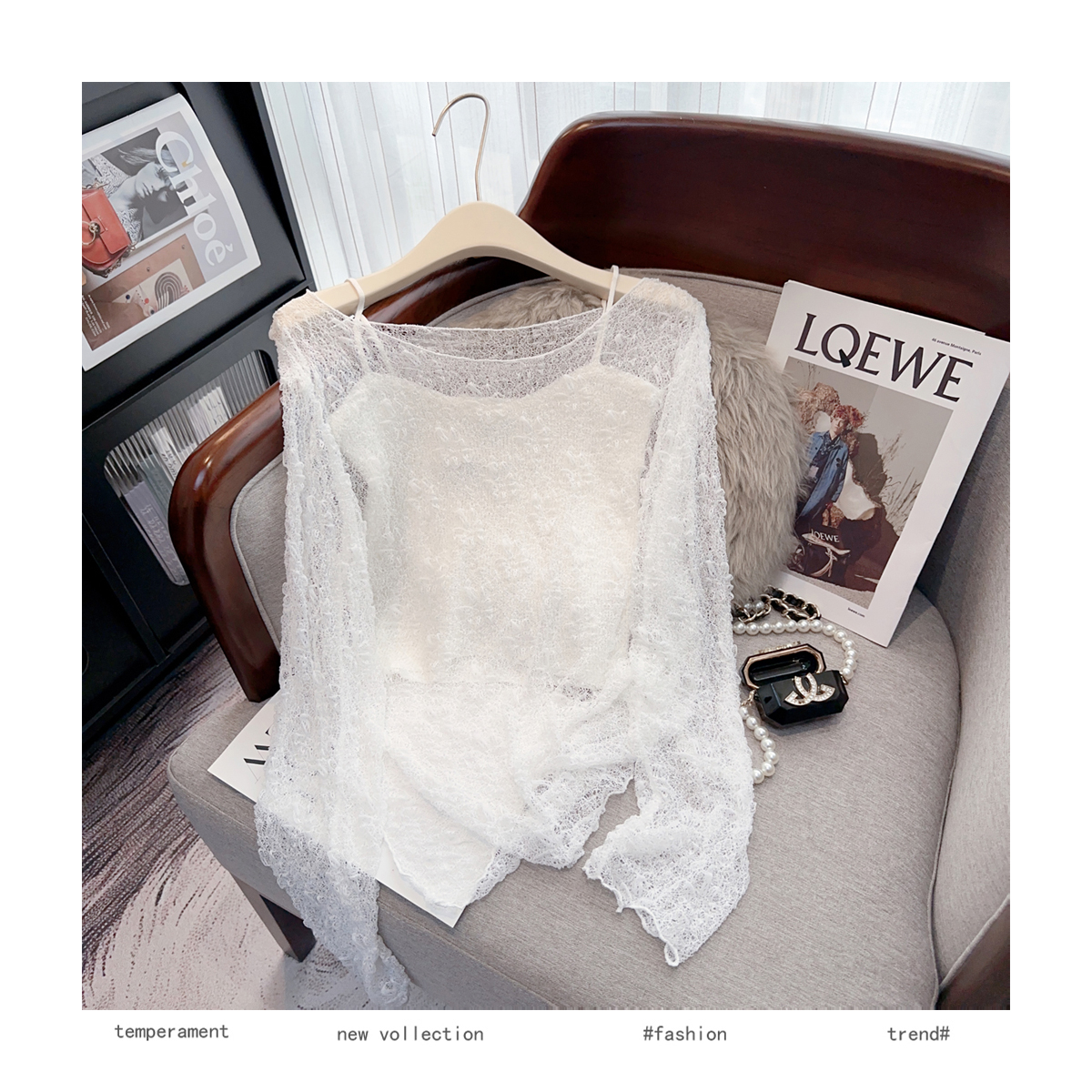 長袖圓領性感微透蕾絲衫女2025新款時髦ins性感修身內搭打底衫潮