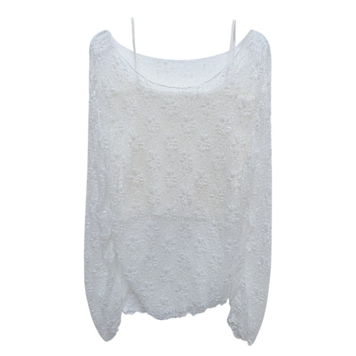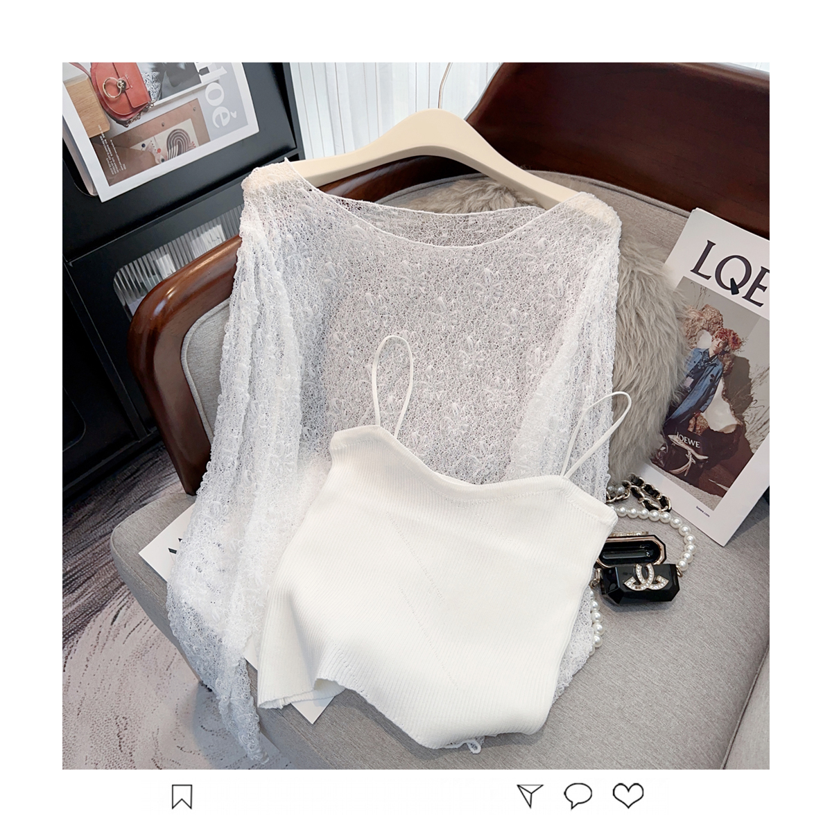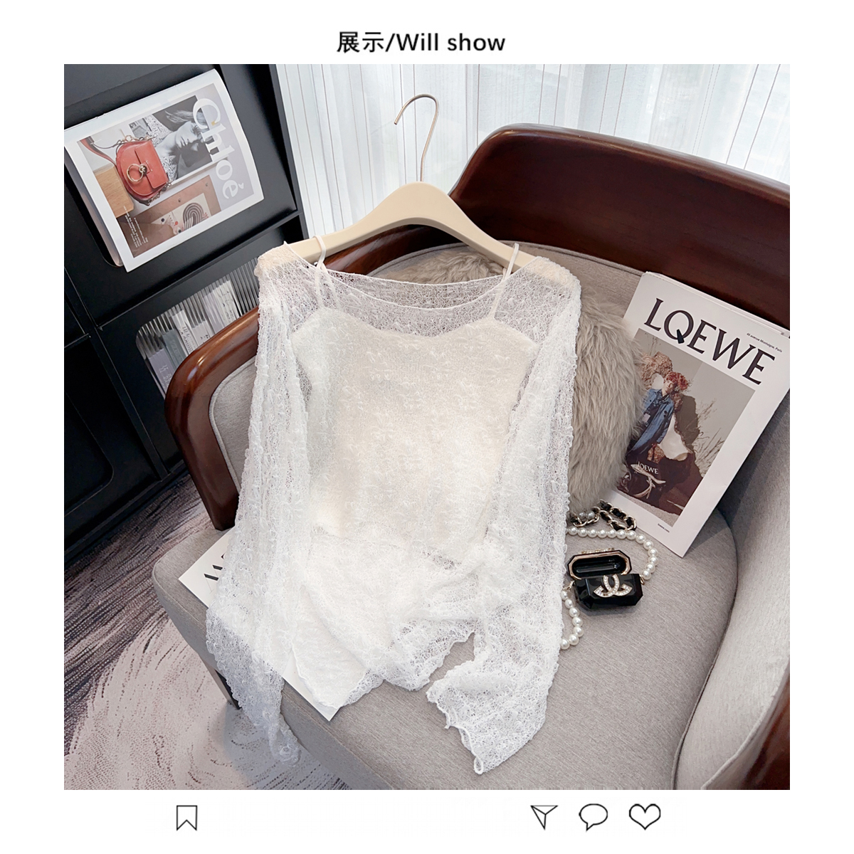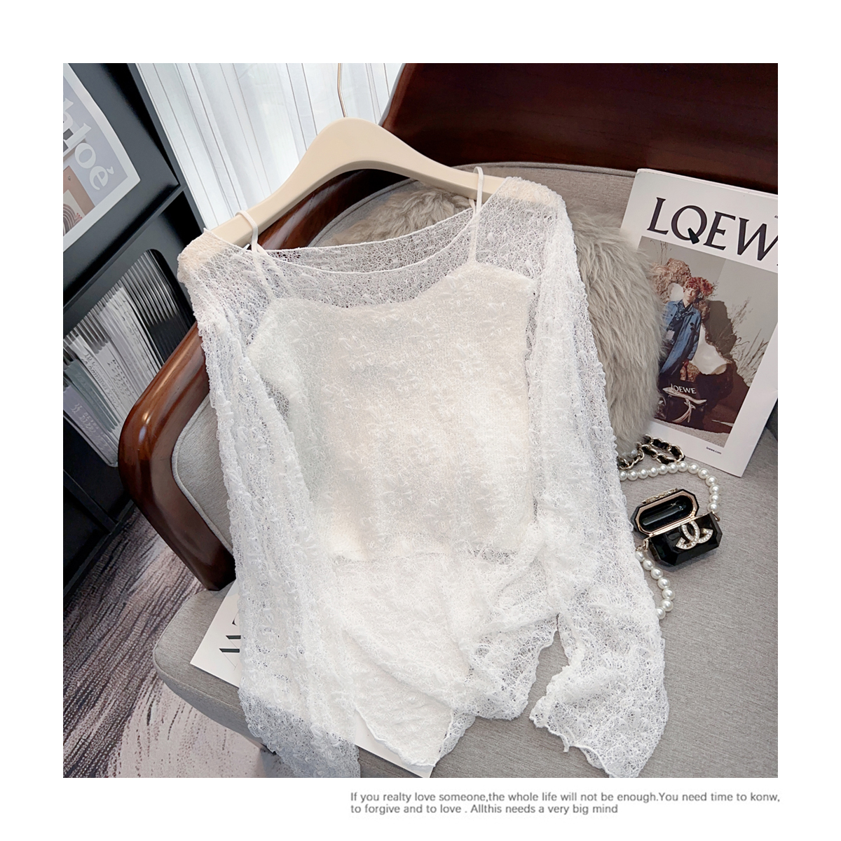 長袖圓領性感微透蕾絲衫女2025新款時髦ins性感修身內搭打底衫潮