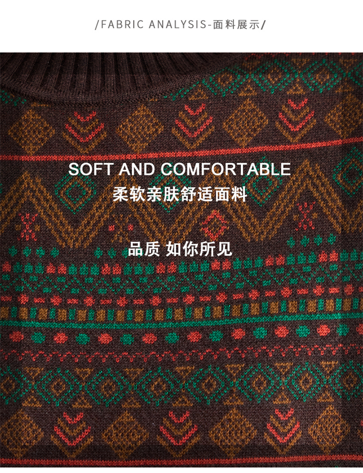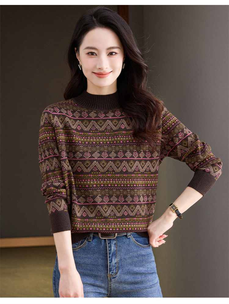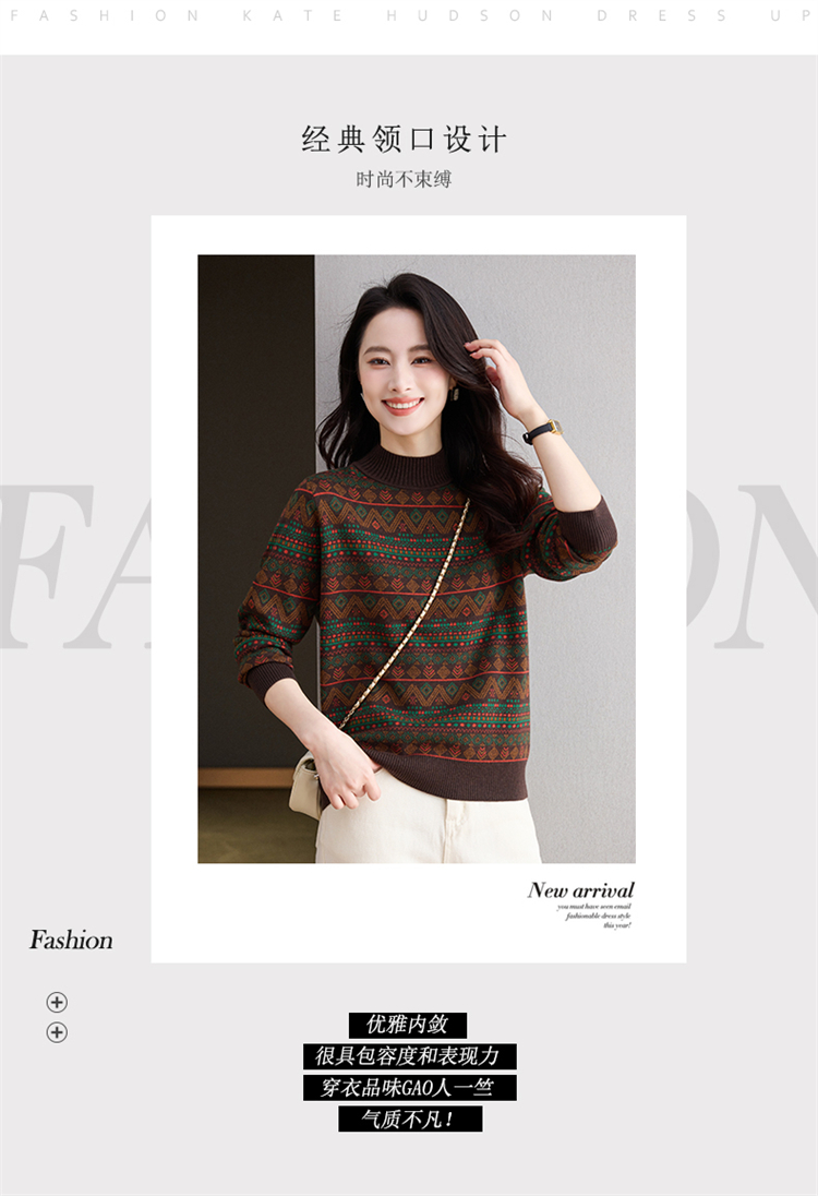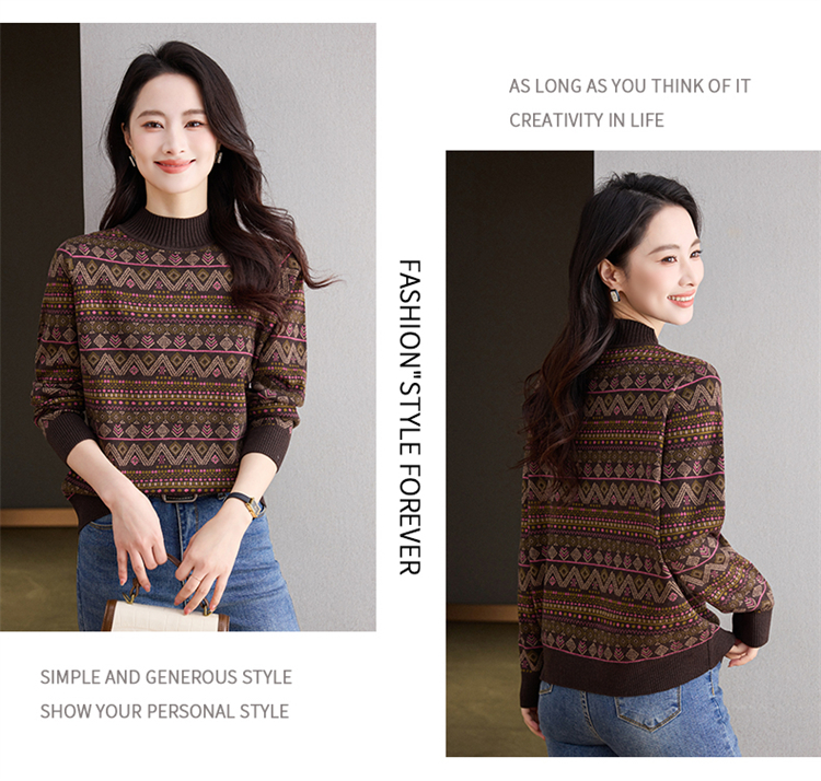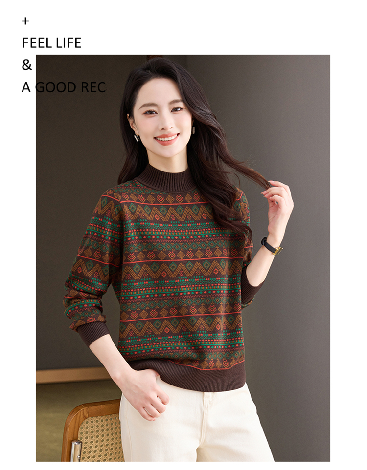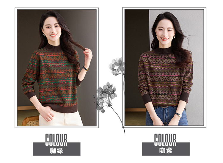 恒源祥半高領復古提花毛衣女秋冬季新款媽媽羊毛衫加厚內搭打底衫