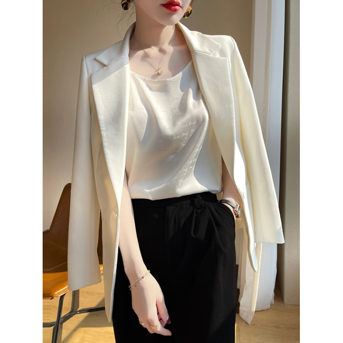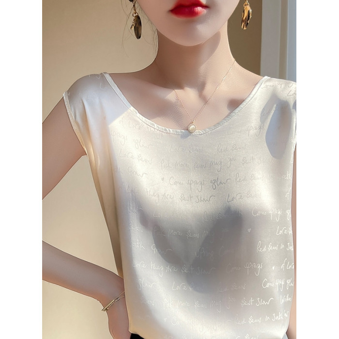 白色圓領無袖絲滑吊帶背心女2025夏季新款西裝內搭寬松打底衫上衣
