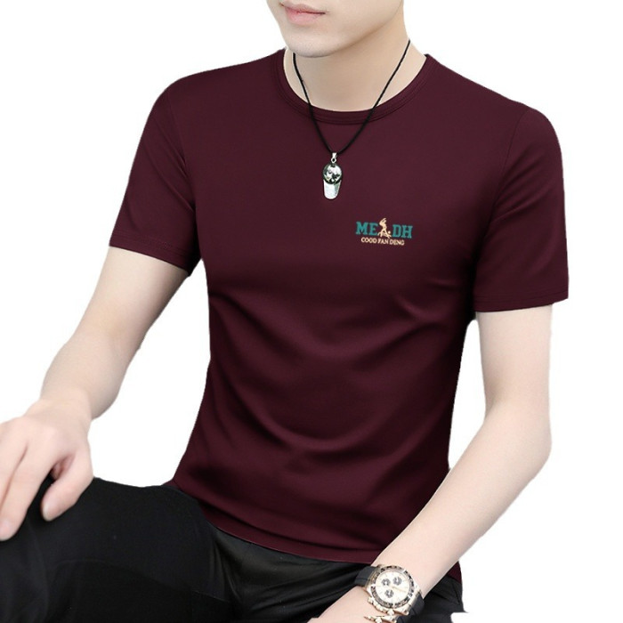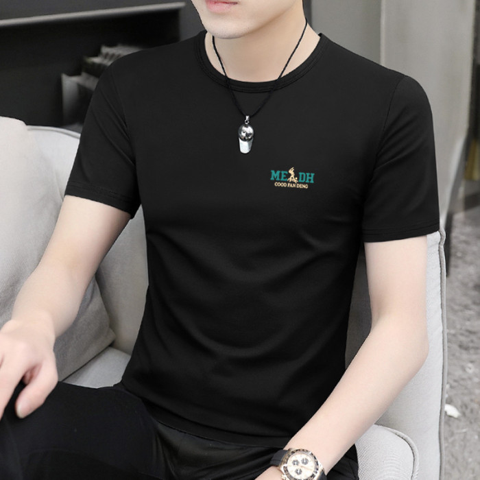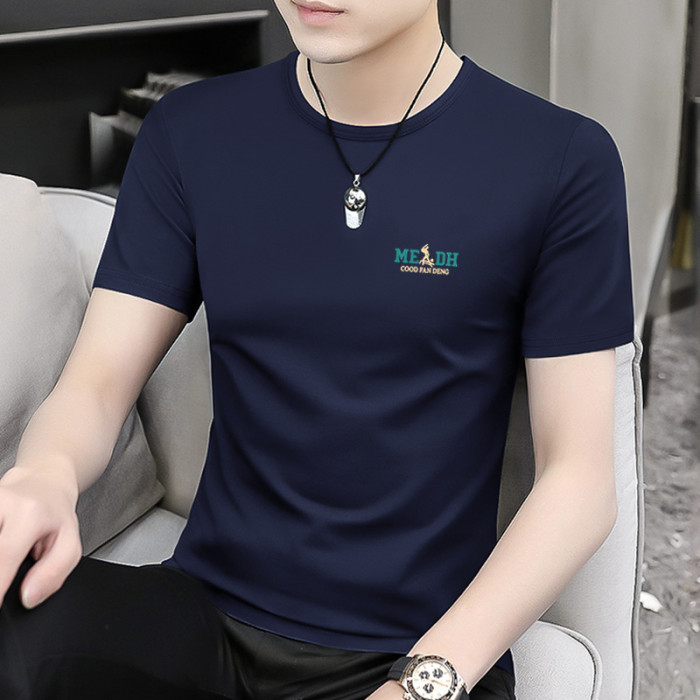 莫代爾棉高級男士冰絲短袖t恤夏季新款圓領冰感透氣速乾體恤潮流