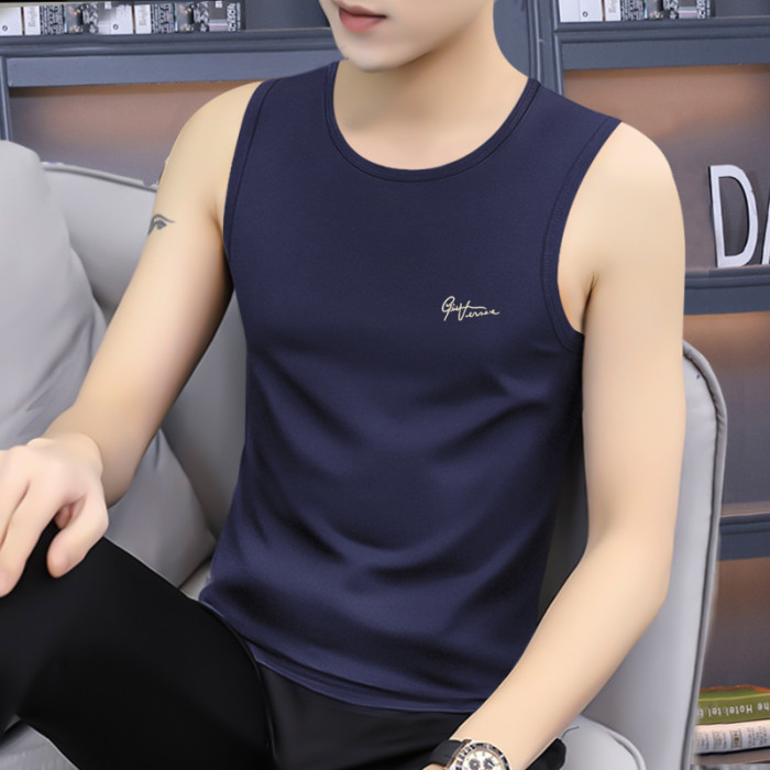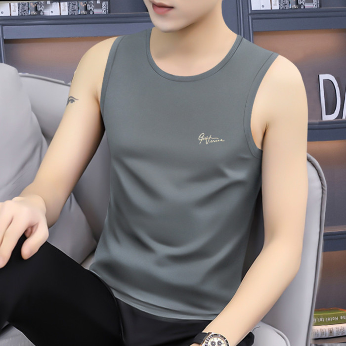 冰絲莫代爾男士背心夏季男裝透氣運動健身緊身無袖t恤坎肩老頭衫