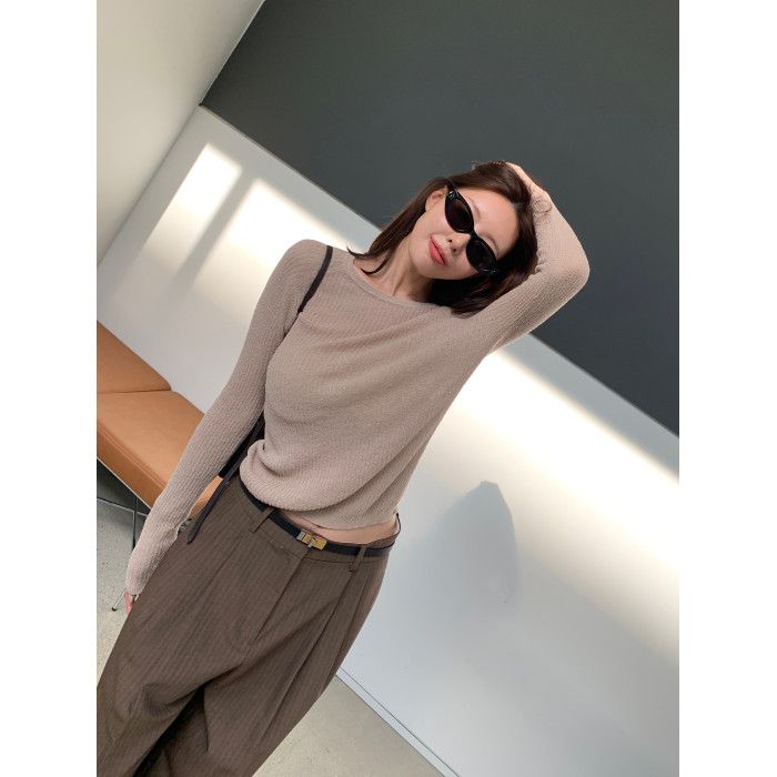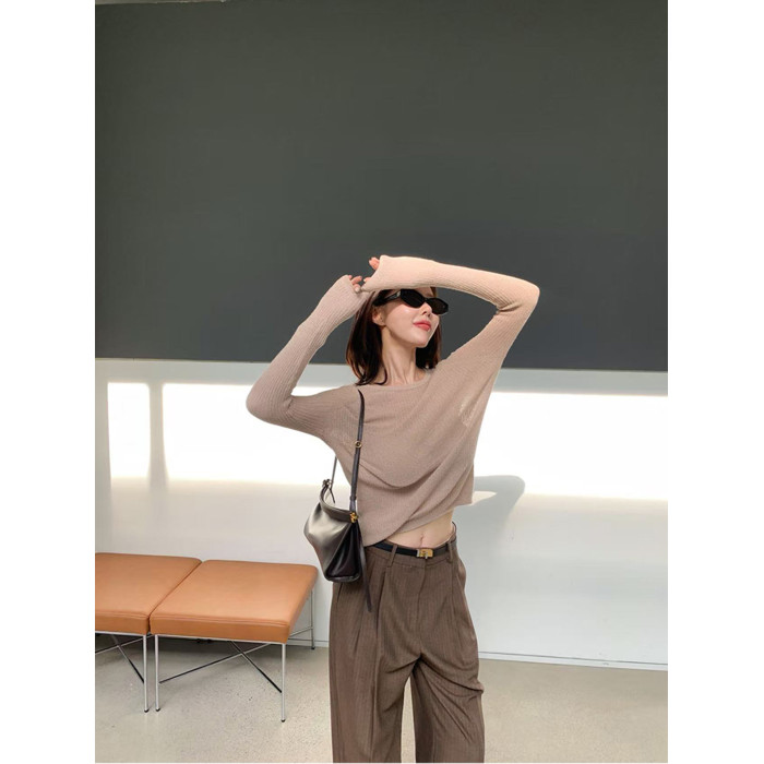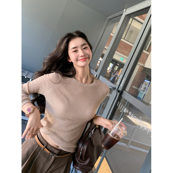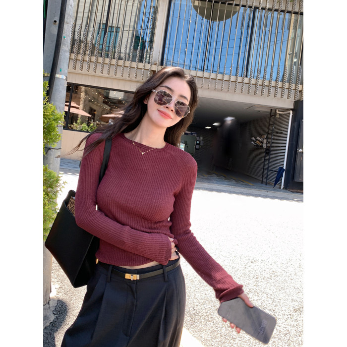 DORACTR 通勤!圓領長袖針織衫女修身顯瘦內搭打底衫早秋新款