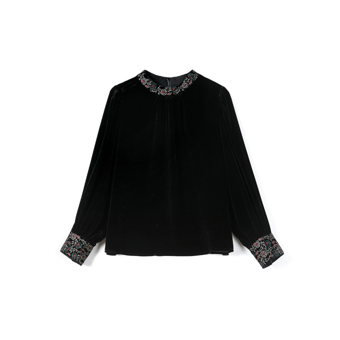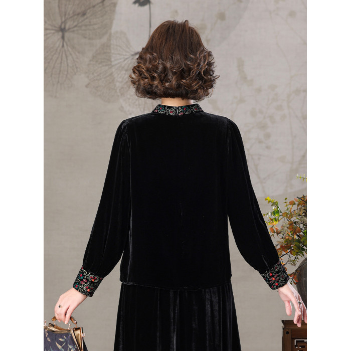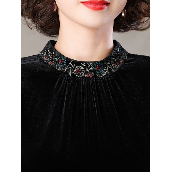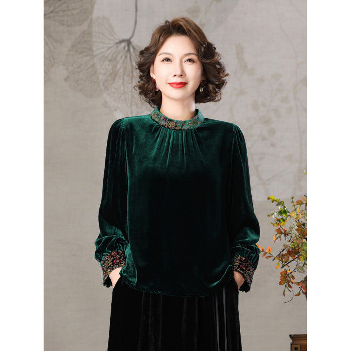 初秋穿搭高級感上衣女長袖媽媽衣服新中式高級氣質絲絨打底衫外搭