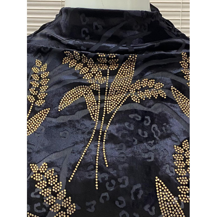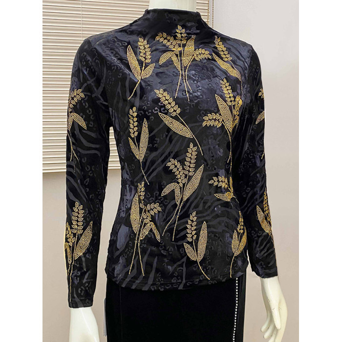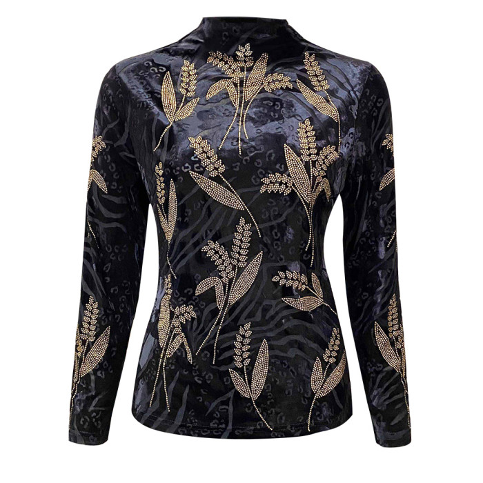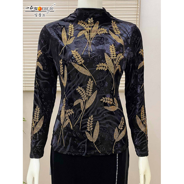 一品奴中老年高貴燙鑽半高領打底衫秋季新款肥媽媽200斤寬松長袖