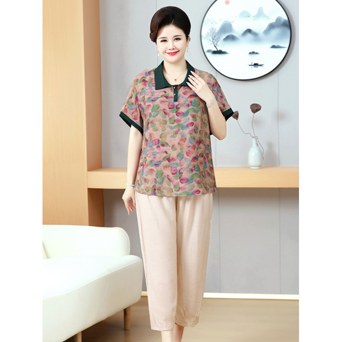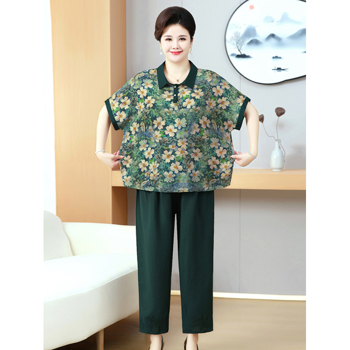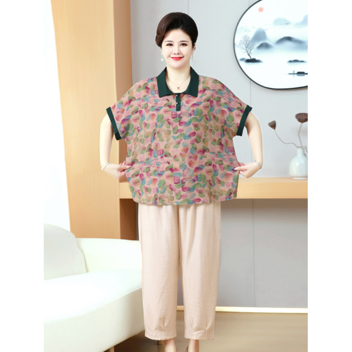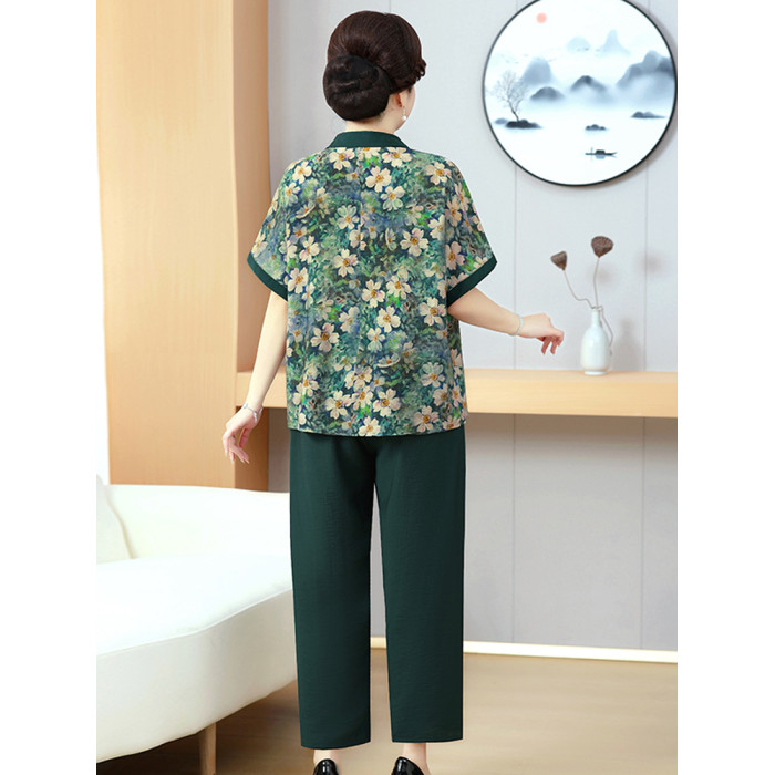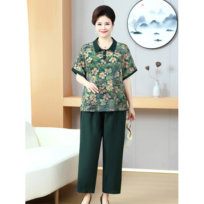 時尚媽媽碎花套裝2025夏季新款貴夫人氣質大碼減齡媽媽夏裝兩件套