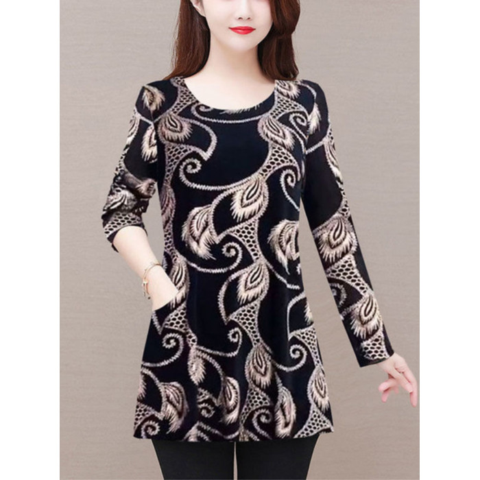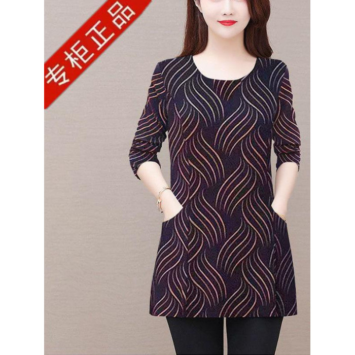 中老年打底衫長袖2025春秋新款媽媽上衣遮肚中長款寬松顯瘦時尚女
