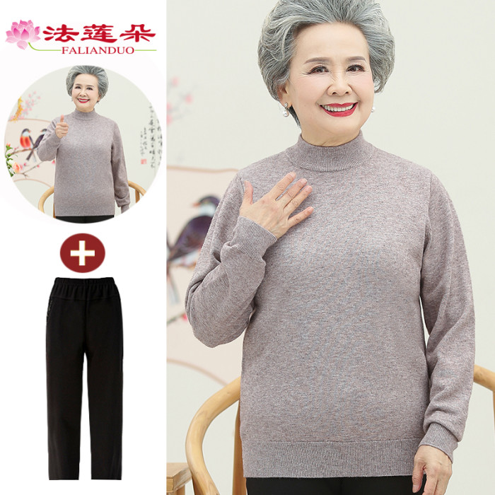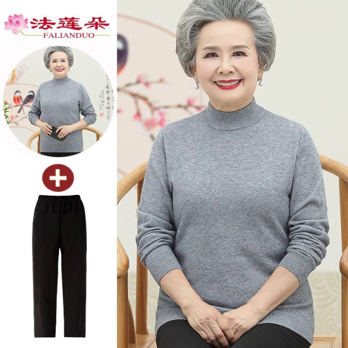 中老年人女媽媽黑色針織打底衫上衣服老太太奶奶春秋冬裝純色毛衣