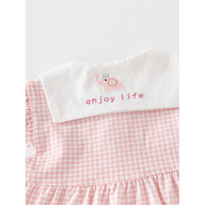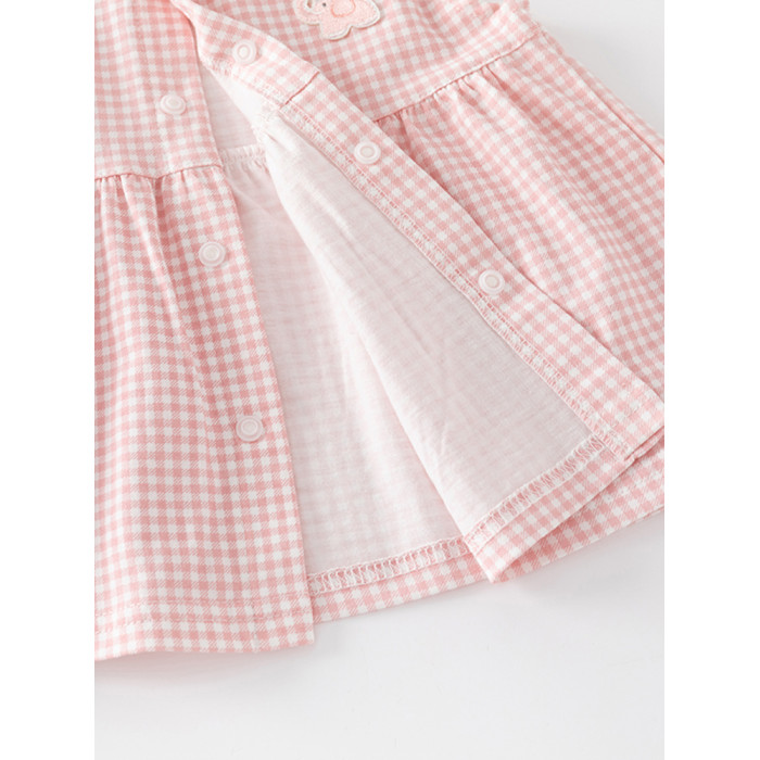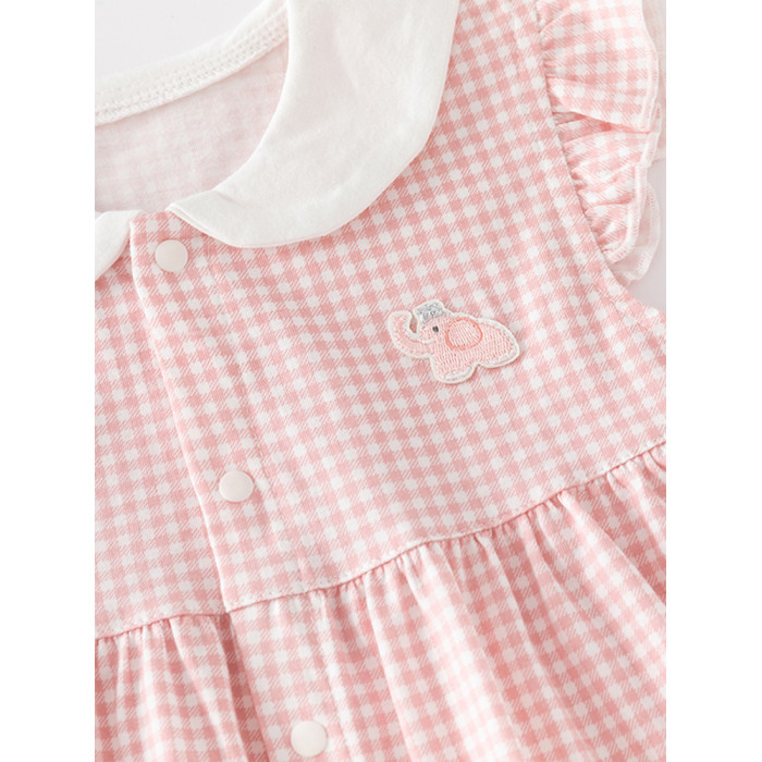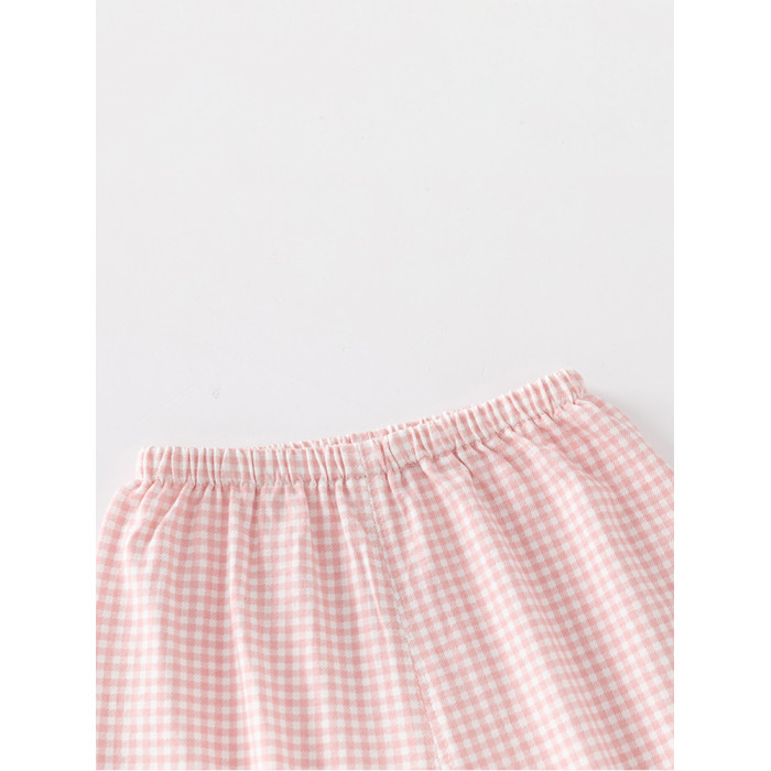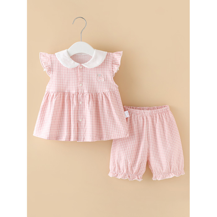 粉色格子女寶寶衣服套裝分體兩件套夏裝女童外出小公主純棉嬰兒裝