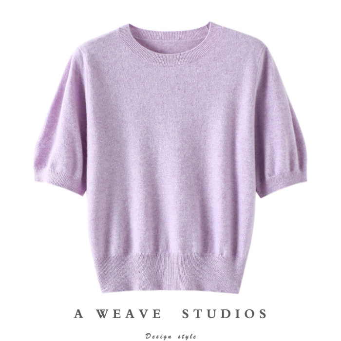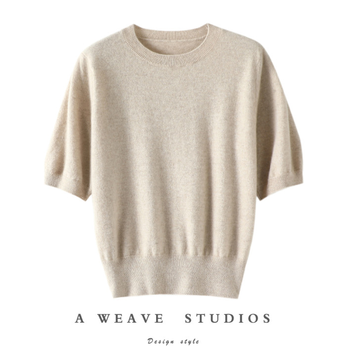 閉眼入不會出錯的款~好搭!圓領羊絨短袖女純羊絨毛衣打底衫秋冬