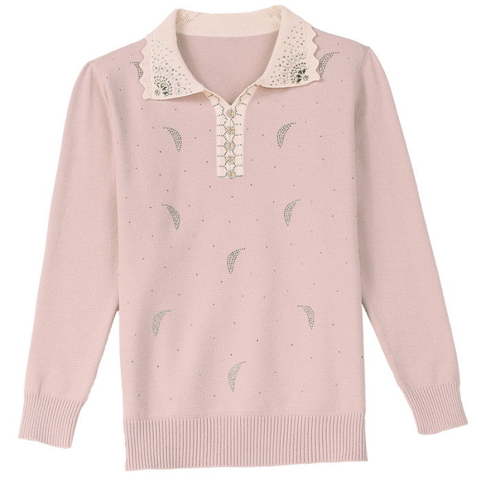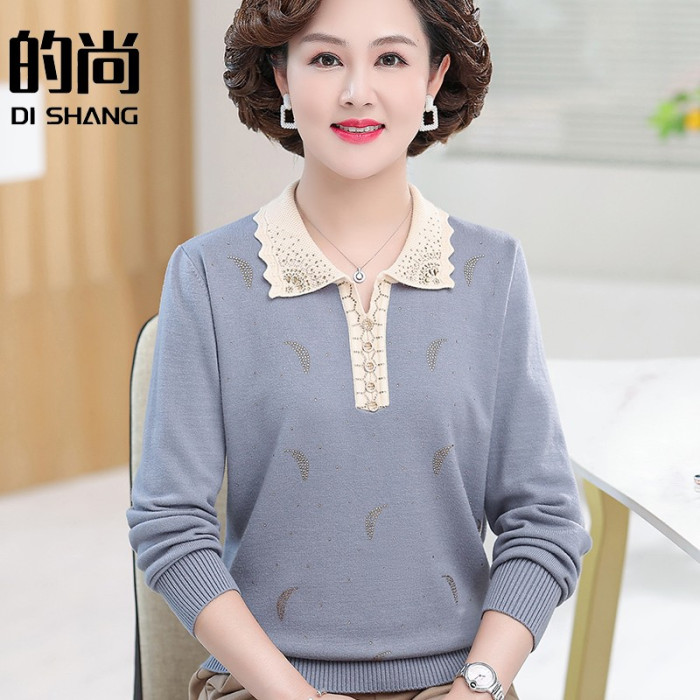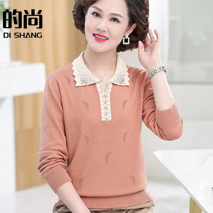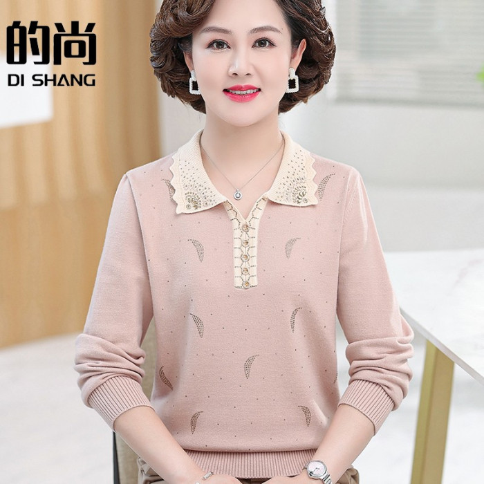媽媽裝春秋季長袖打底衫薄款洋氣大碼毛衣中老年人女針織上衣套裝