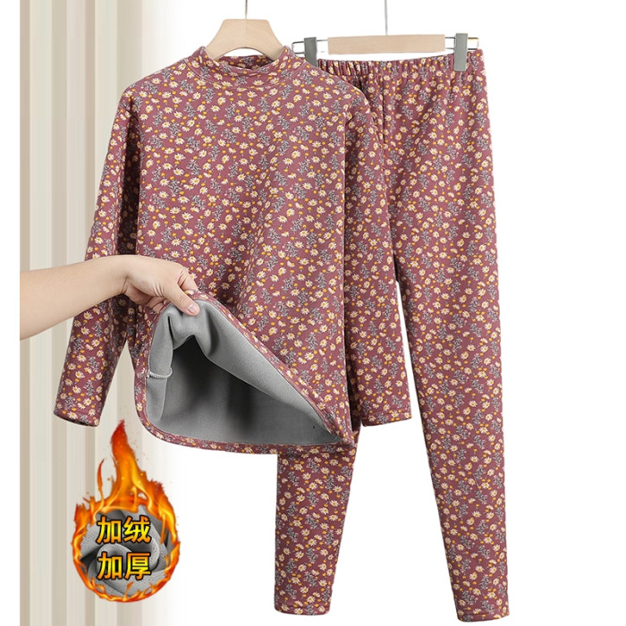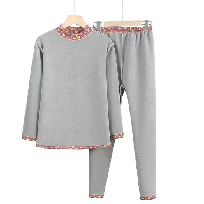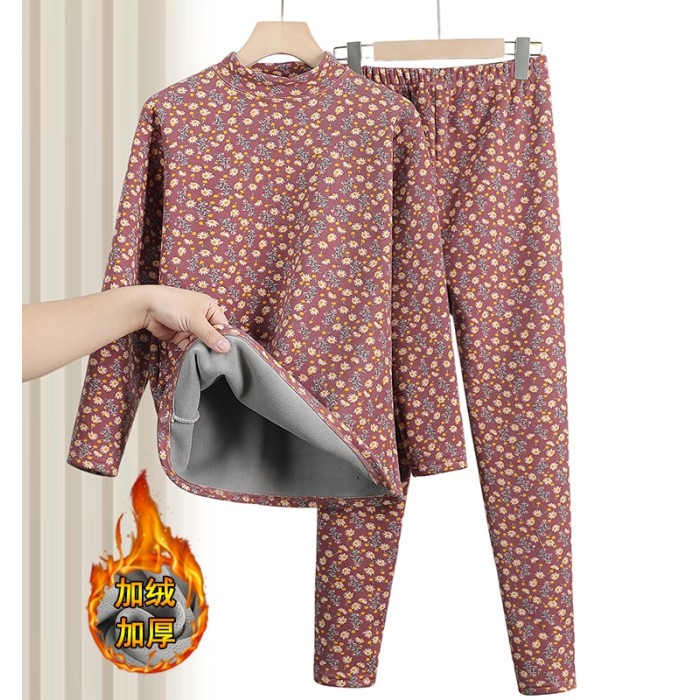 中老年人冬裝女奶奶加厚保暖內衣套裝媽媽老人德絨套頭薄絨打底衫