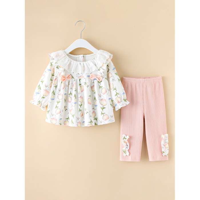 0-6嵗A類純棉兩件套分體寶寶衣服春秋款童裝女小香風嬰兒裝一嵗女