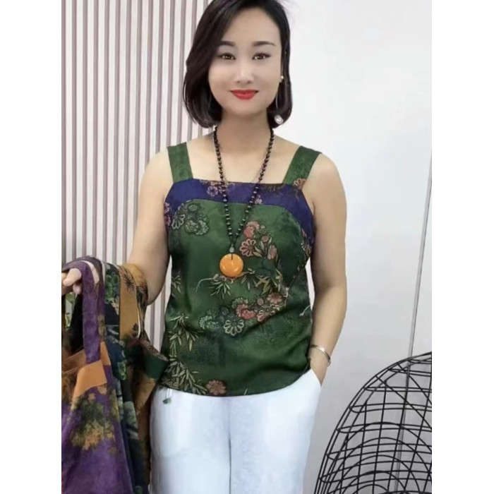 媽媽裝夏大碼雙面雙穿雙花色花羅背心中年國風復古提花吊帶打底衫
