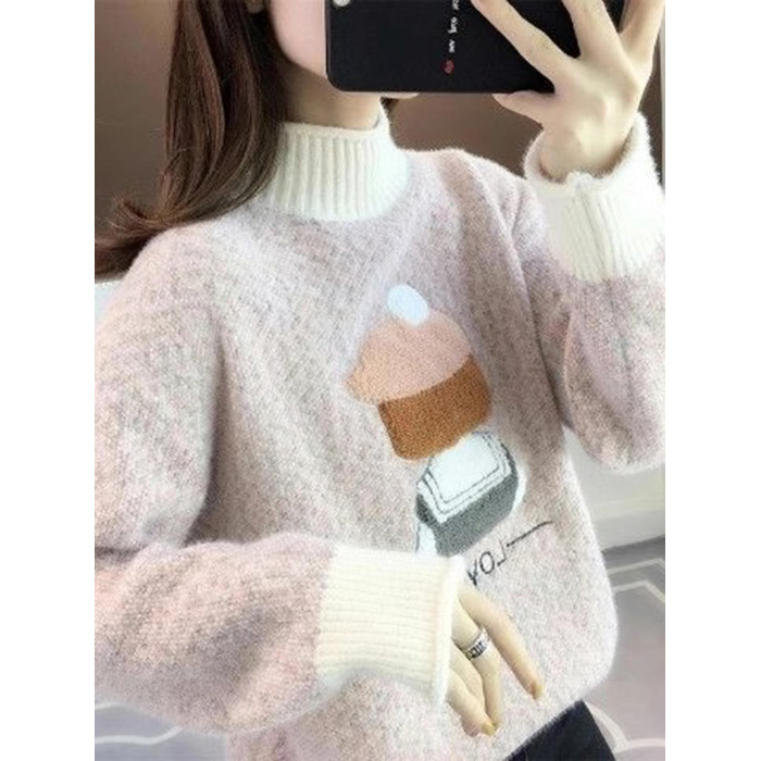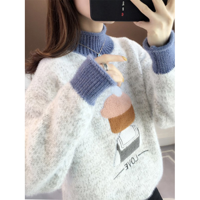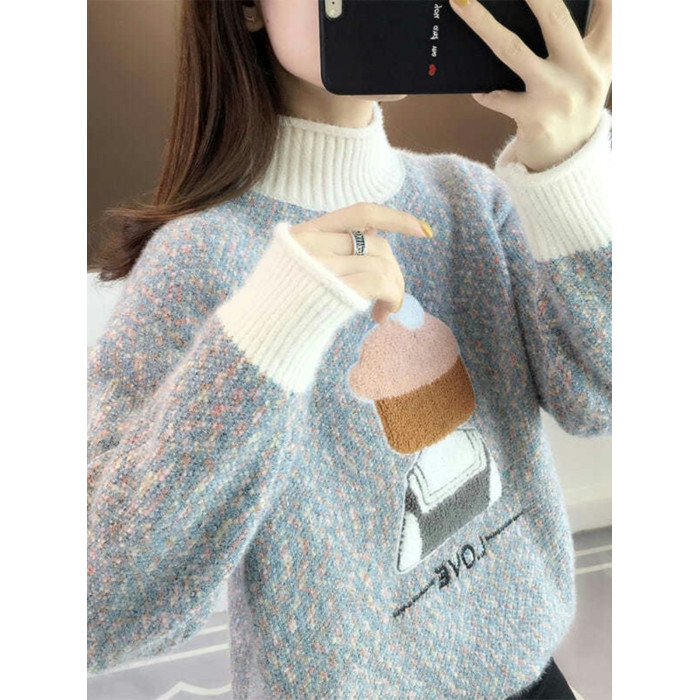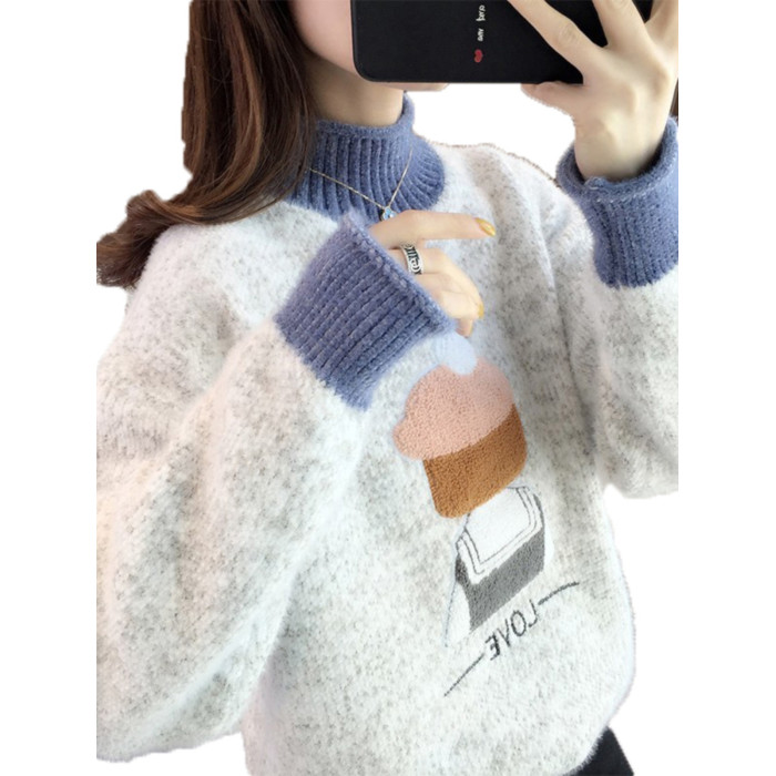 貨號 | 水貂羢毛衣寬松半高領2023年秋冬新款加羢百搭套頭學生針織打底衫水貂羢毛衣女寬松2023年秋冬新款外穿慵嬾風套頭學生針織打底衫潮 |