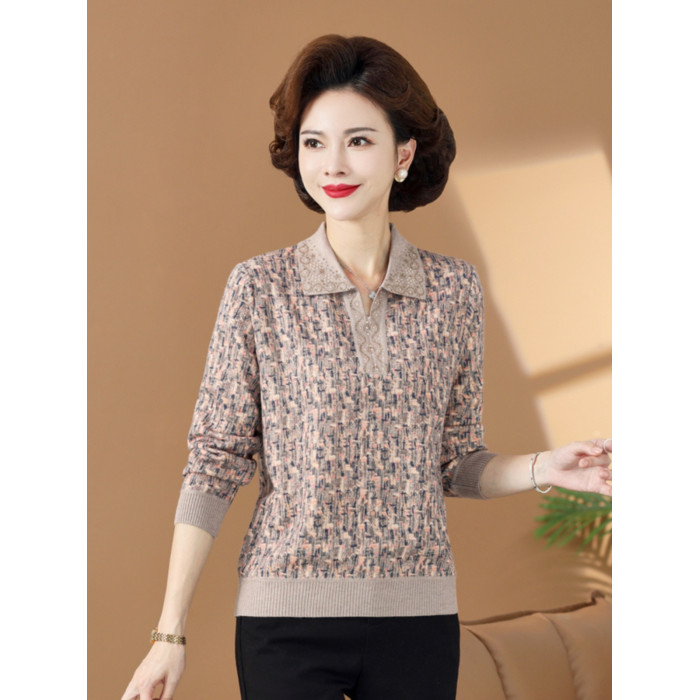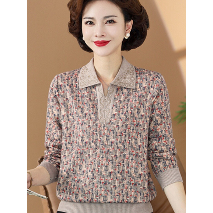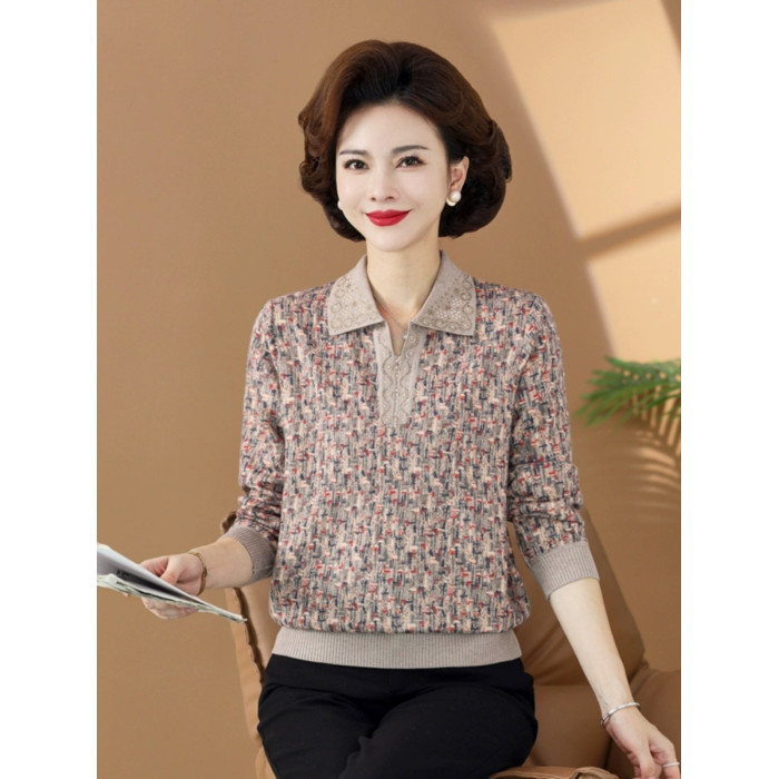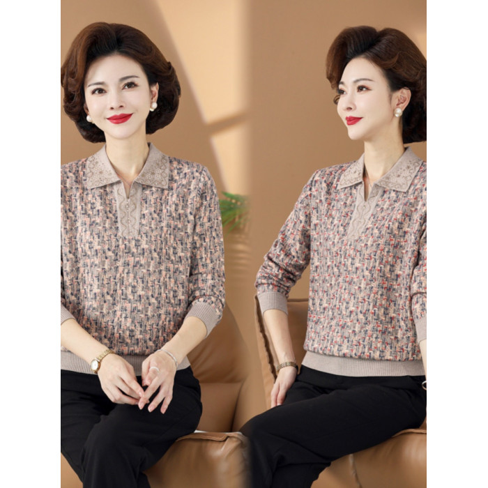 春秋裝上衣服媽媽秋天中老年女裝t恤025新款薄帶領女款小個子大碼