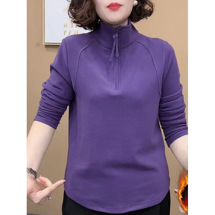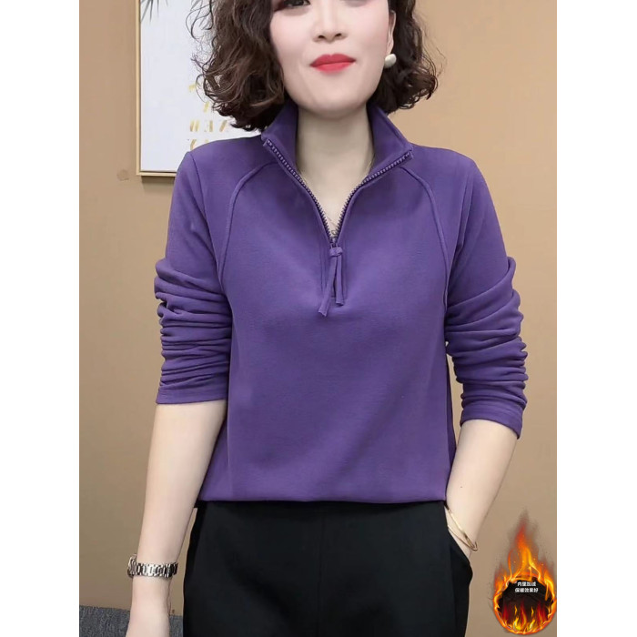 時尚女裝立領一體絨保暖打底衫秋冬2024新款洋氣遮肚加絨氣質小衫