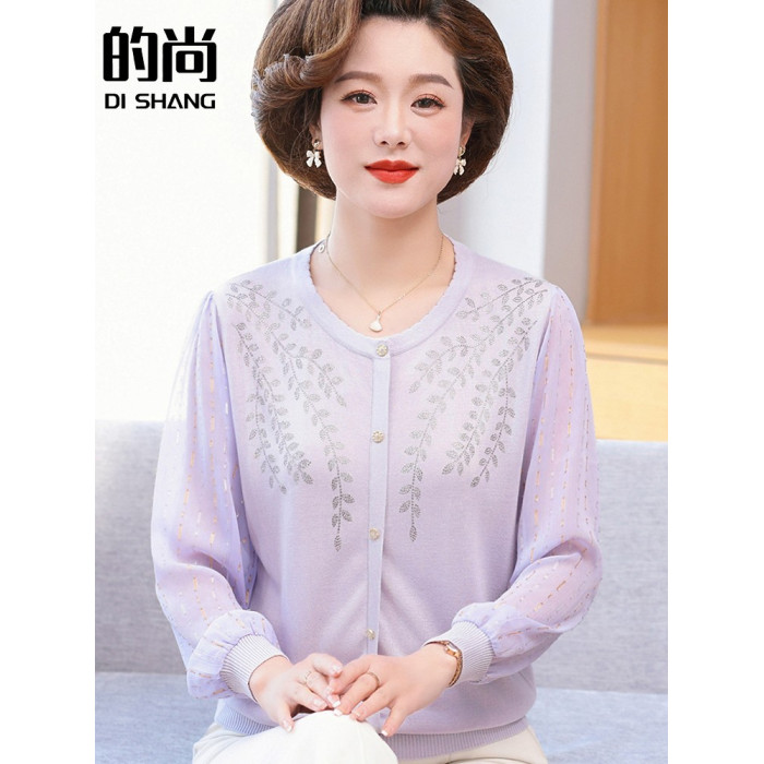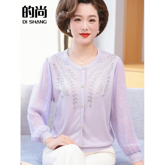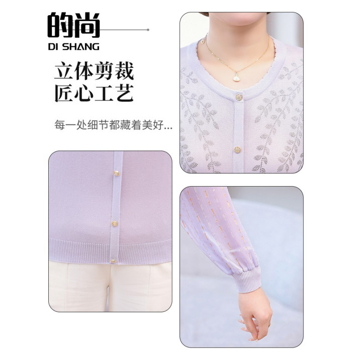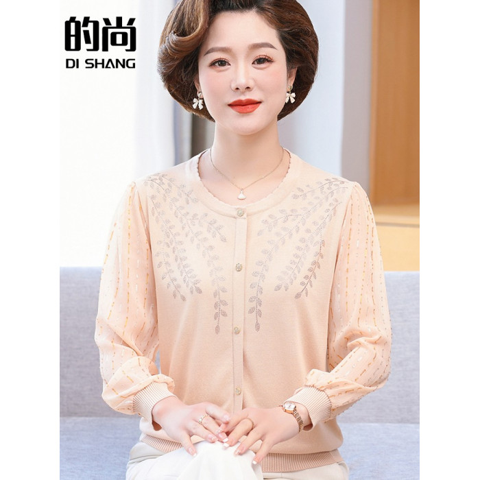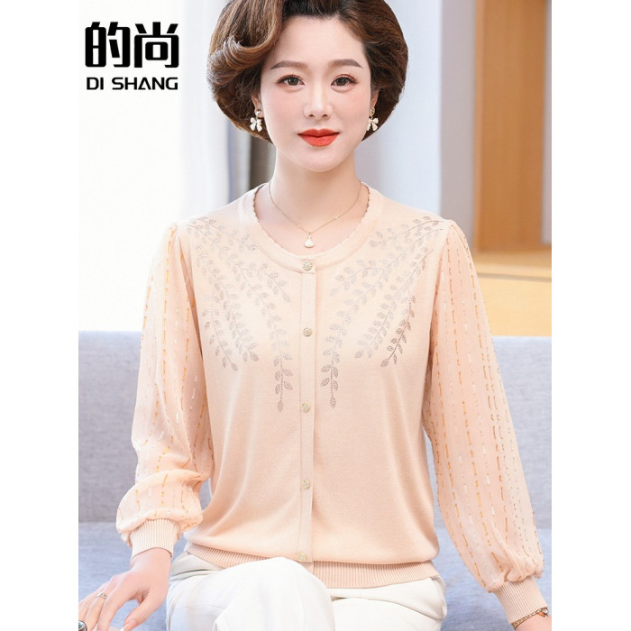 中年輕媽媽春季時尚短款薄針織衫40嵗女減齡打底衫中老年人上衣服