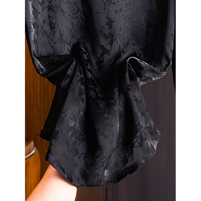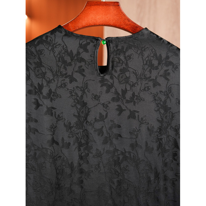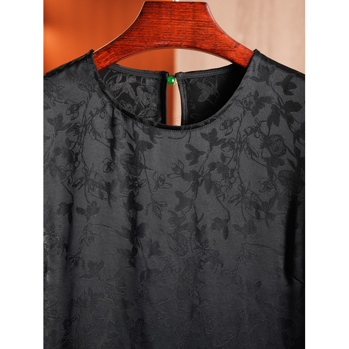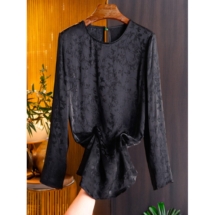 2025年春季真絲桑蠶絲提花圓領套頭寬松慵懶復古通勤打底衫上衣女