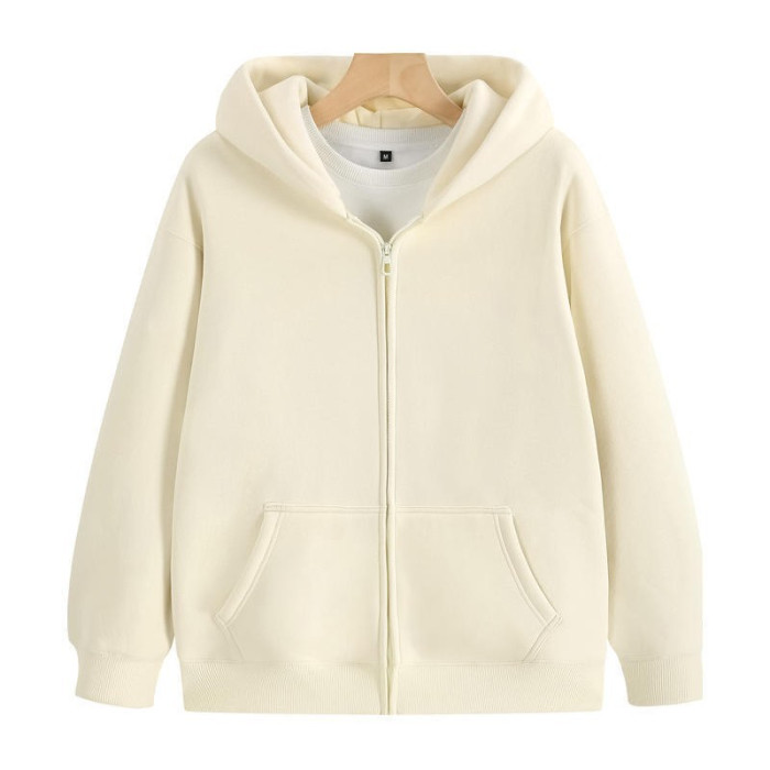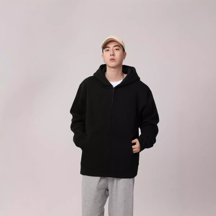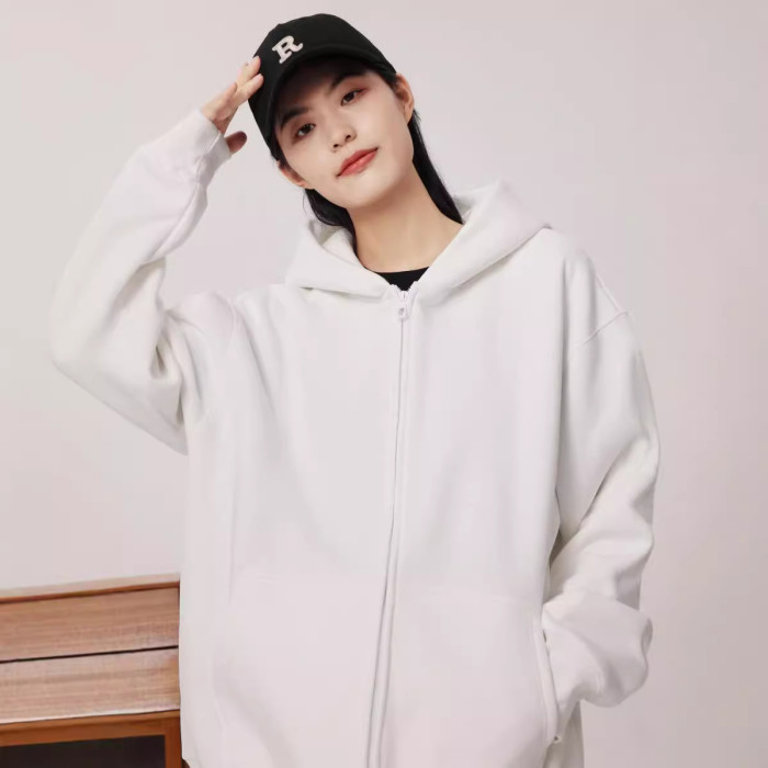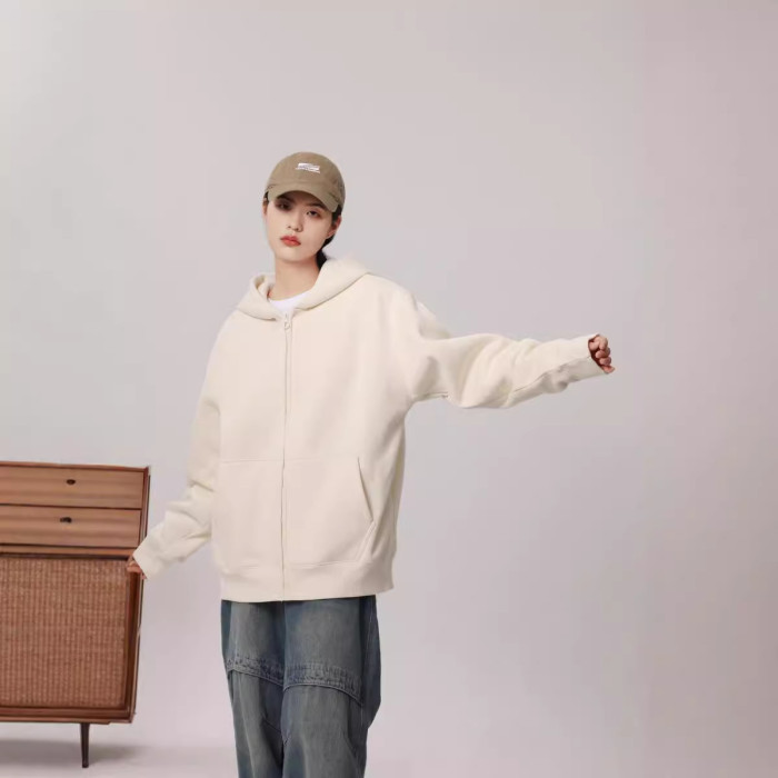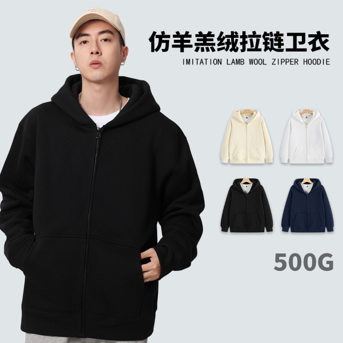 500克重磅加絨落肩衛衣拉鍊連帽寬松羊羔絨衛衣男女外套純色秋冬