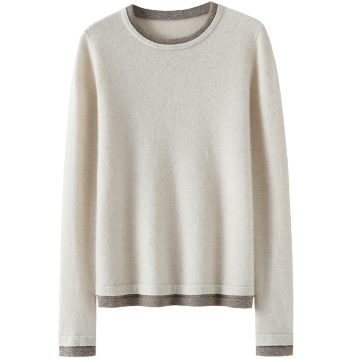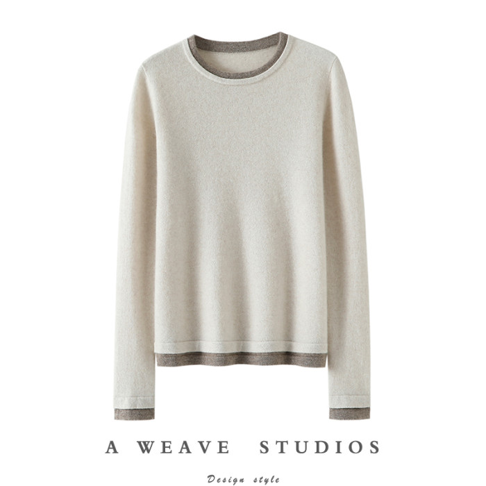 不收遺憾!氣質圓領100%純山羊絨衫女純羊絨毛衣針織打底衫秋冬季