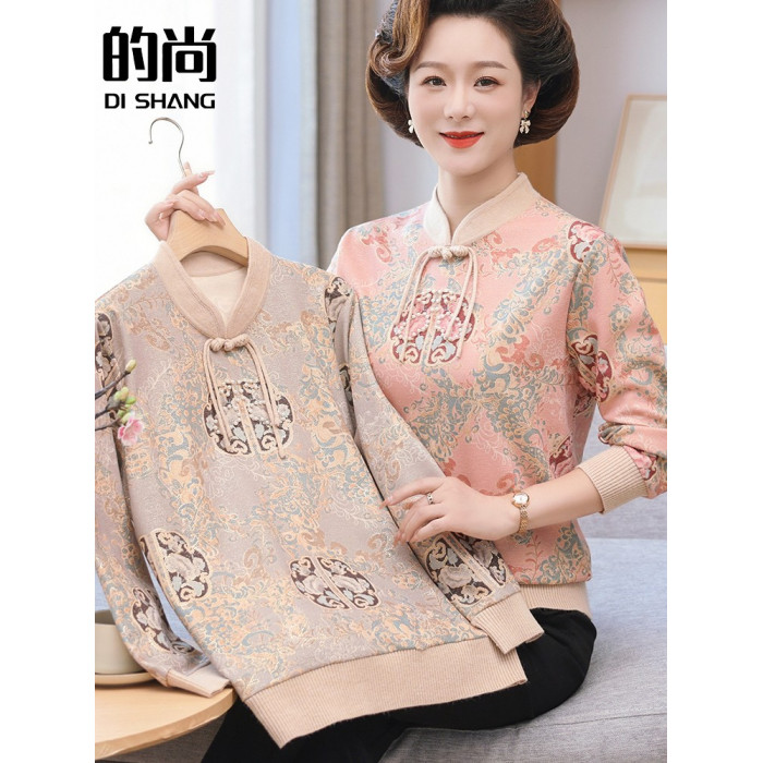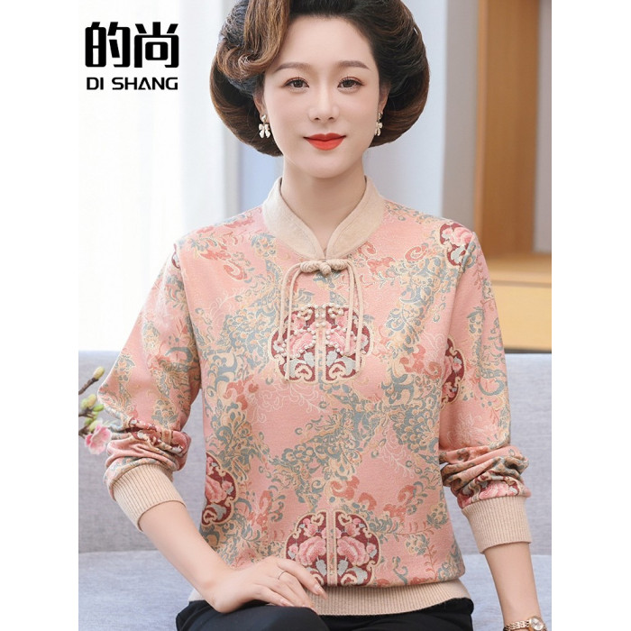 中年媽媽秋裝新款上衣國風寬松毛衣中老年人女春秋減齡打底衫套裝