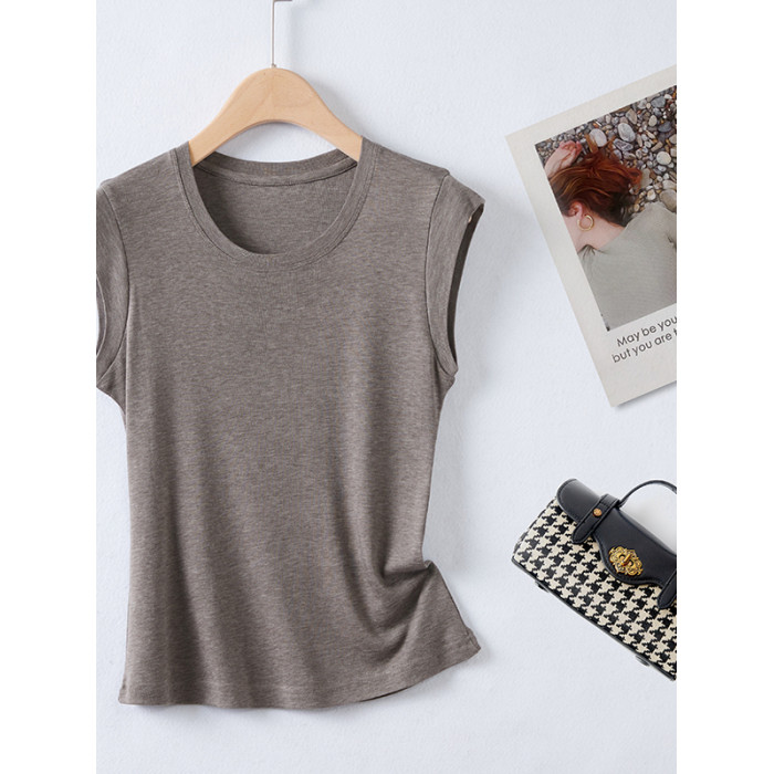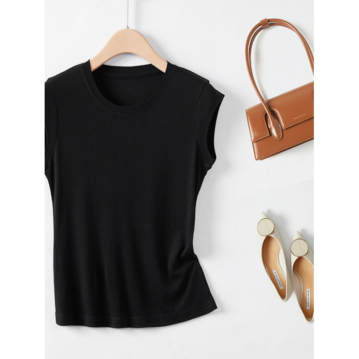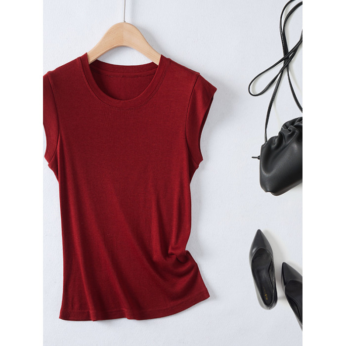 2025新款法式短袖上衣桑蠶絲面料顯瘦百搭打底衫時尚修身款