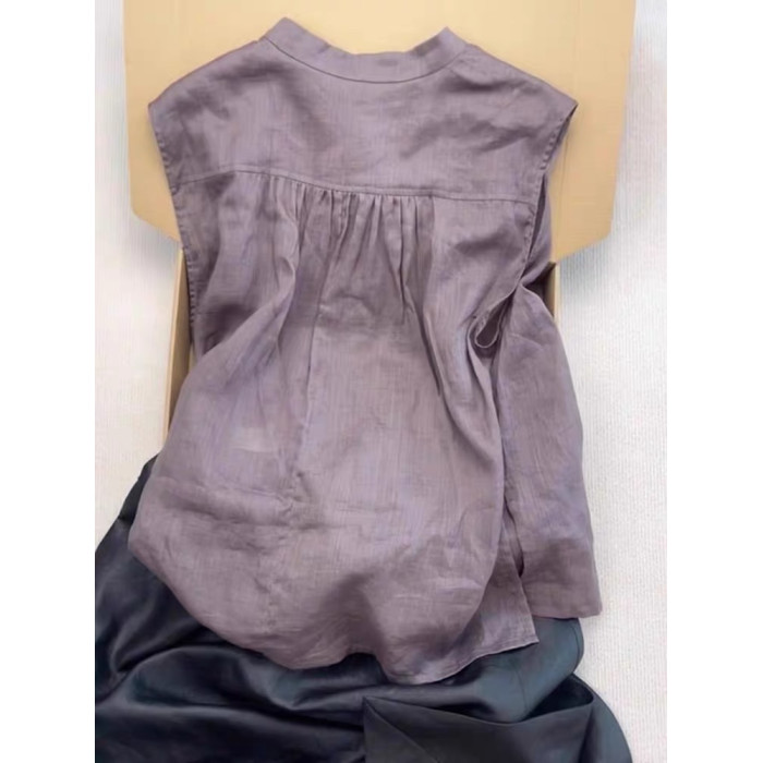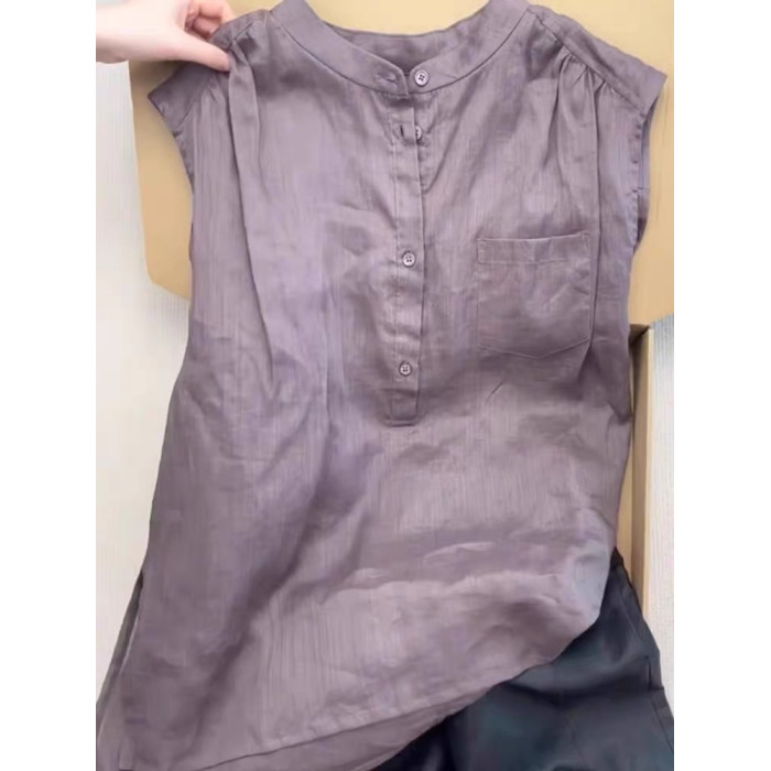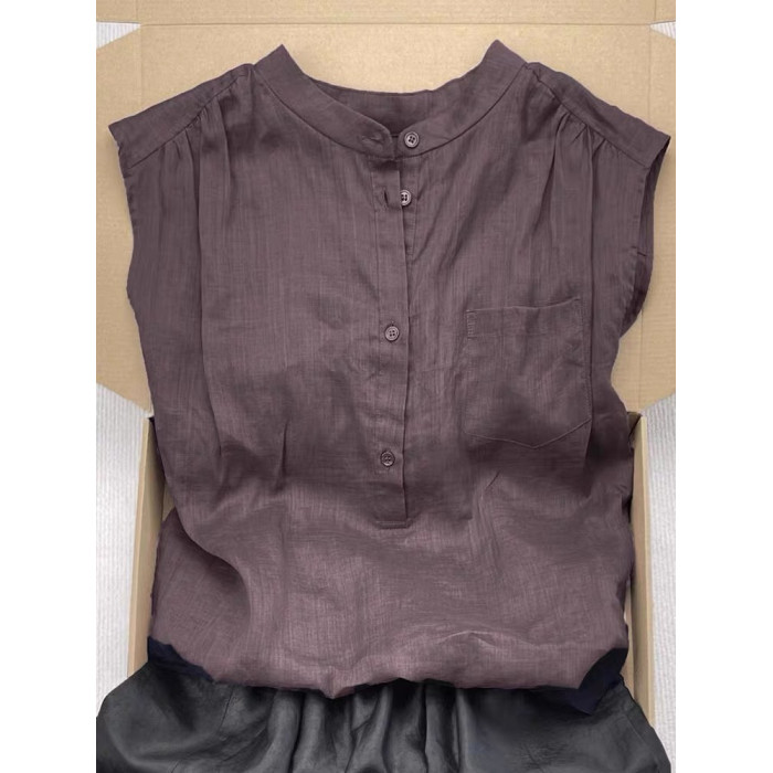 復古圓領暗紫色無袖小衫女夏季裝寬松時尚輕薄顯瘦氣質打底衫上衣
