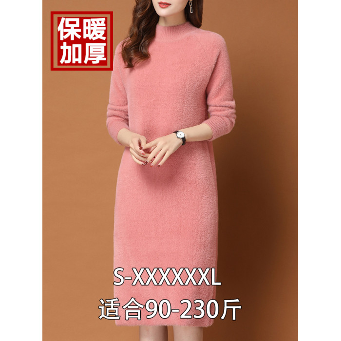 加肥加大碼女裝胖mm200斤 加厚打底衫水貂絨冬季打底衫長款毛衣裙