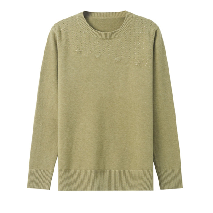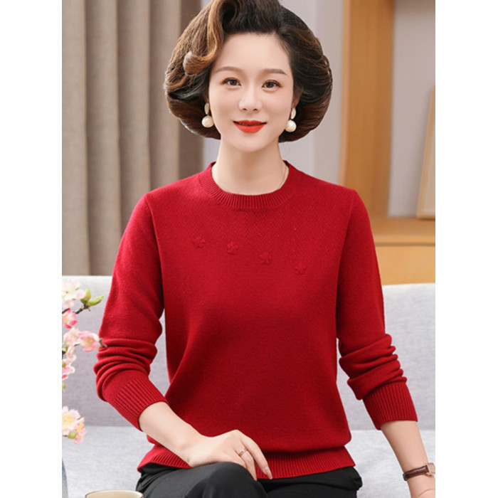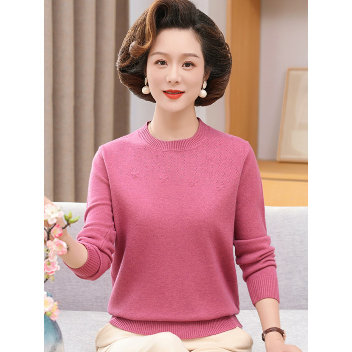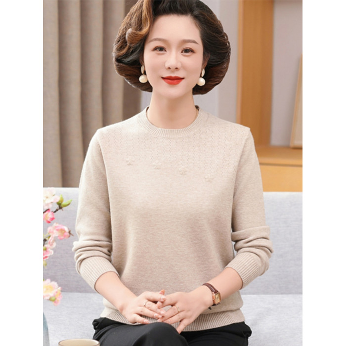 長袖毛衣2024年新款寬松媽媽秋裝針織羊毛衫五十嵗中老年女打底衫
