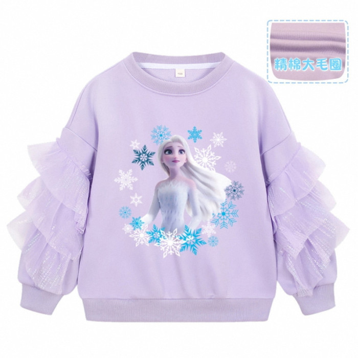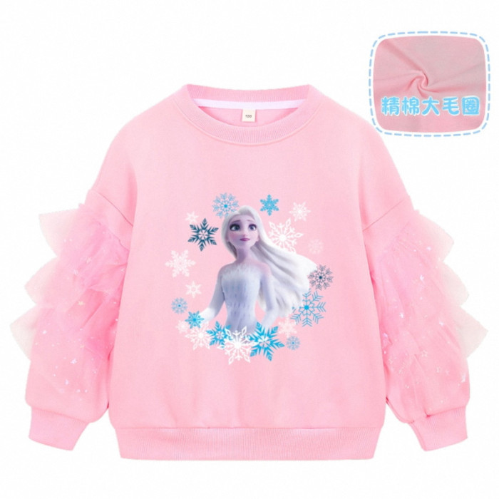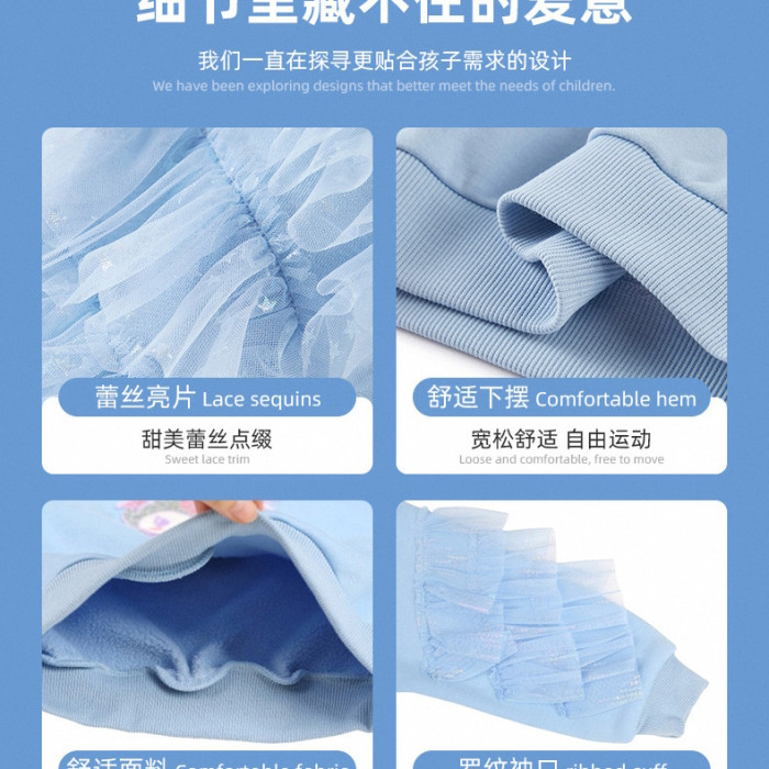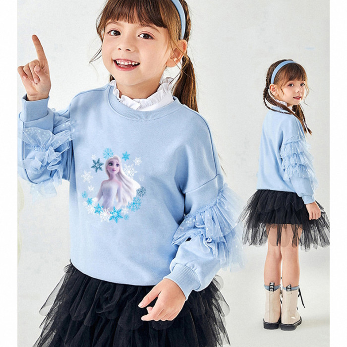 女小童艾莎衛衣春秋裝2025新款愛沙公主小女孩網紗長袖上衣打底衫