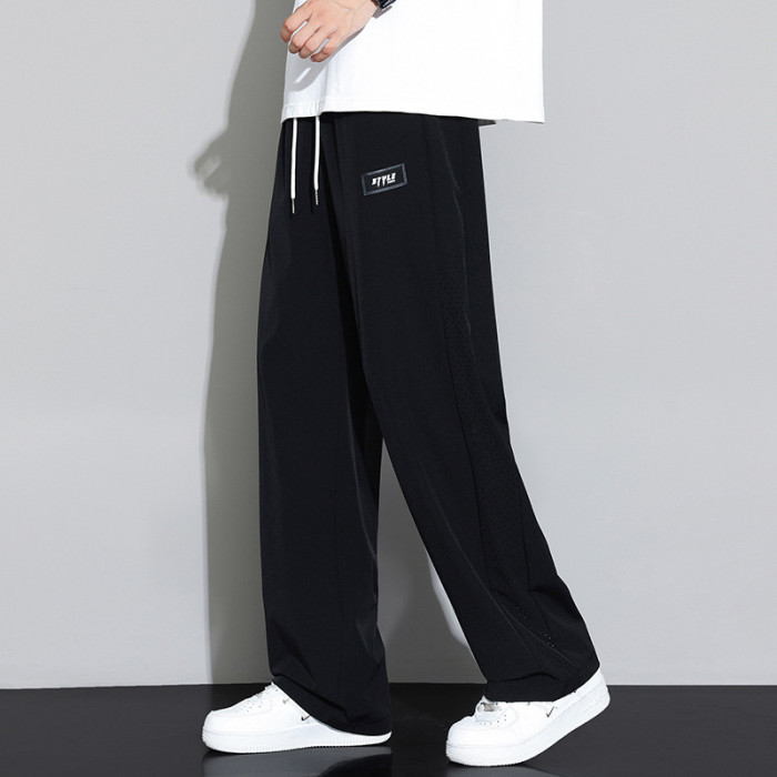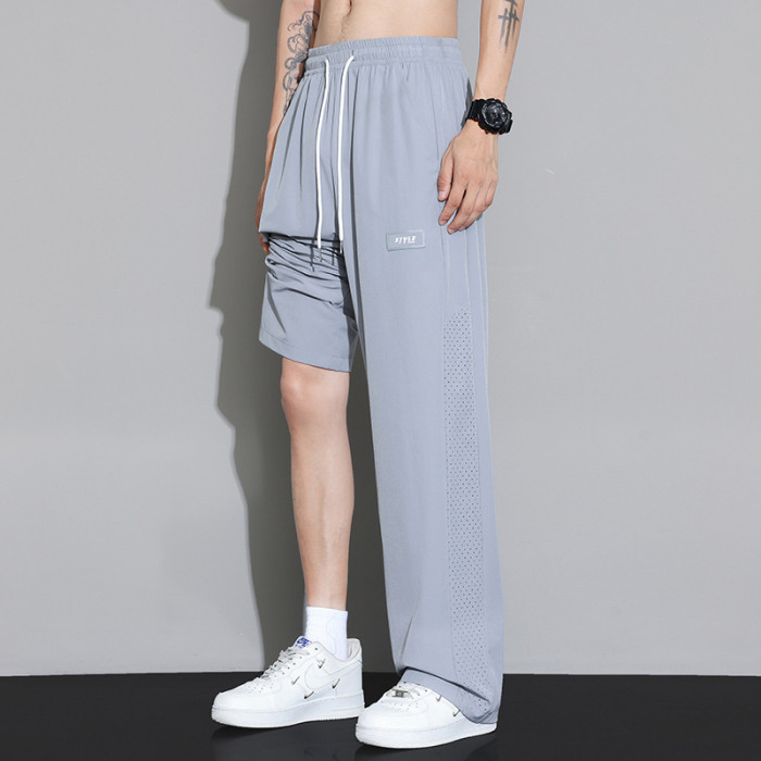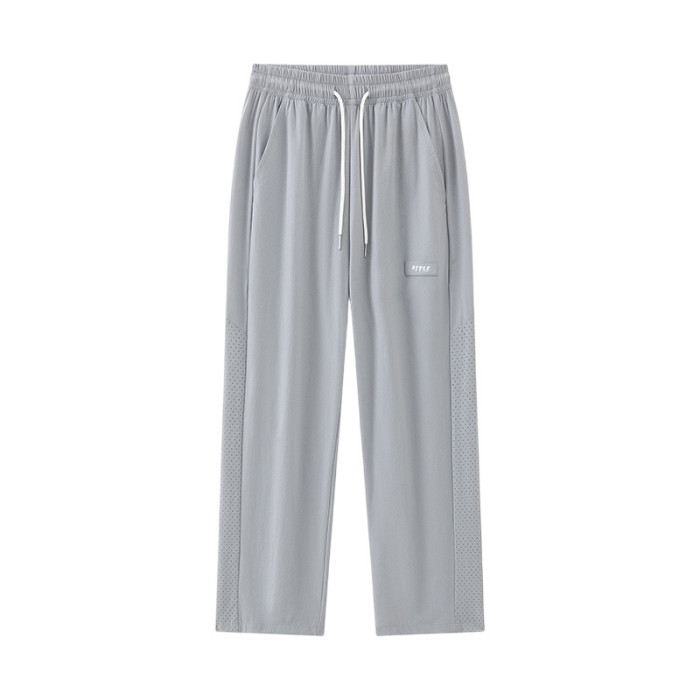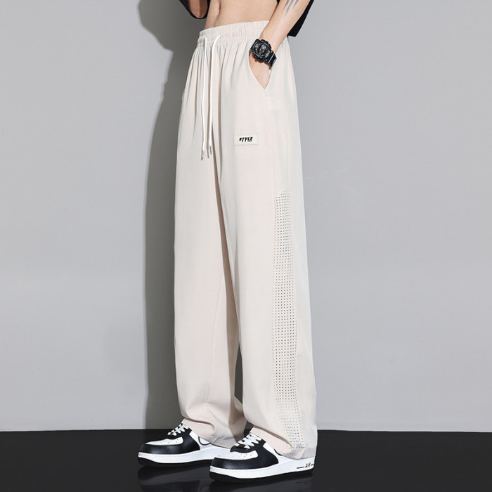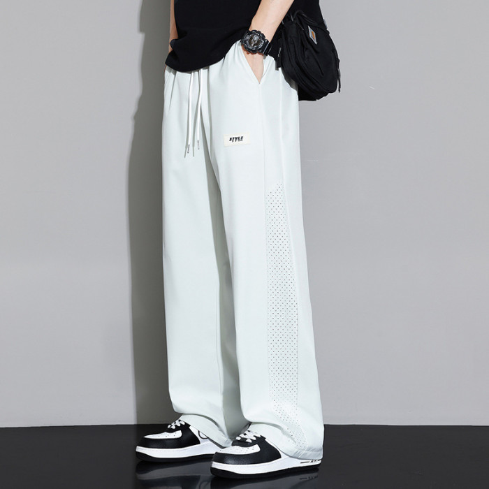 夏季薄款冰絲褲男士直筒側縫雷射開孔休閒褲青年速乾褲