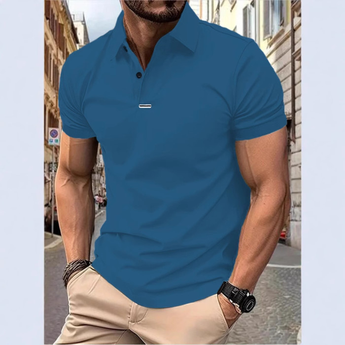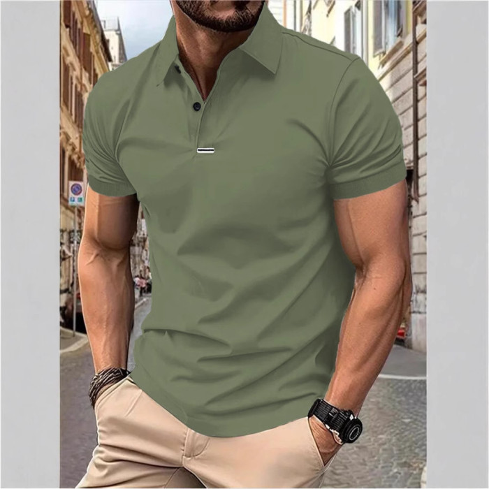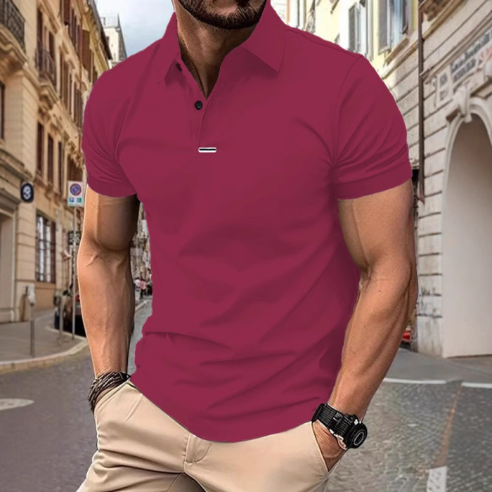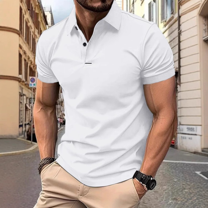 男士新款夏季T恤簡約時尚百搭短袖t恤純色翻領短袖