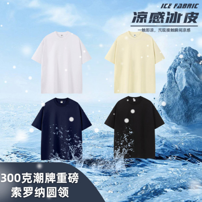 300克潮牌重磅寬松索羅納涼感抗菌純色短袖休閒男t恤冰涼高品質
