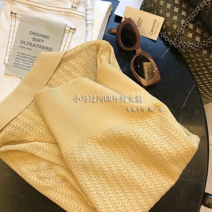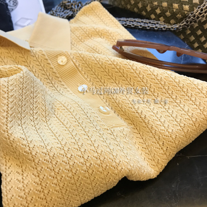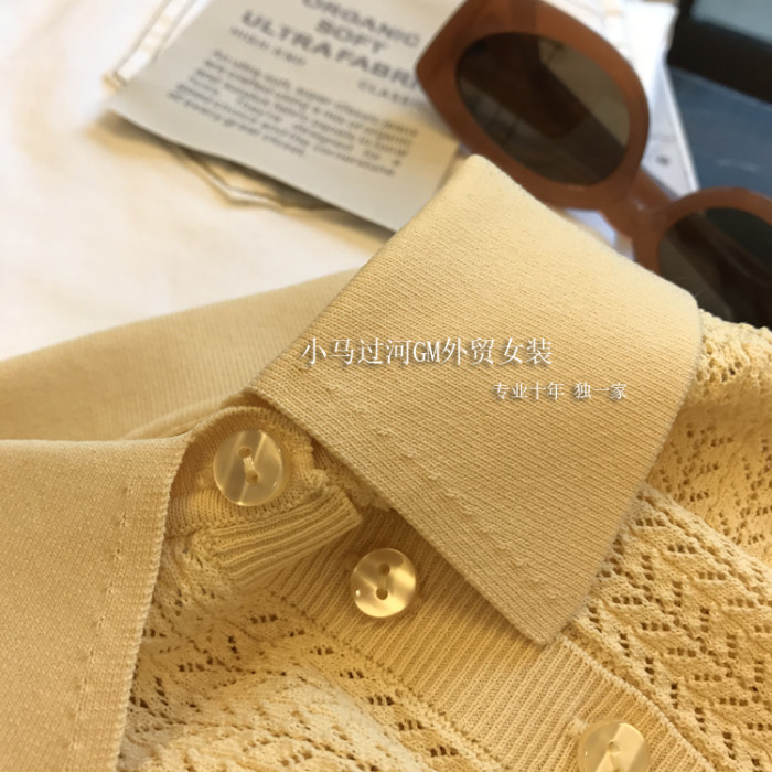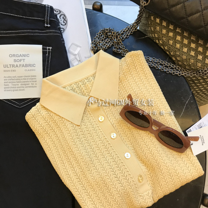 夏季法式黃色鏤空翻領針織衫短袖t恤女polo衫設計感小衆薄款上衣